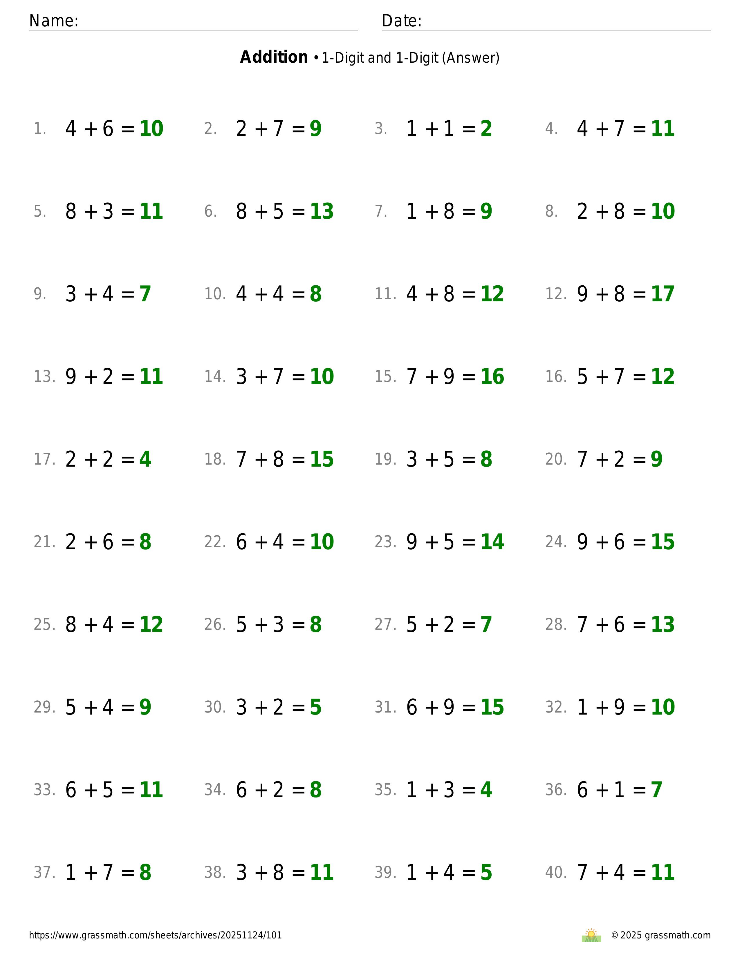 Addition 1-Digit and 1-Digit