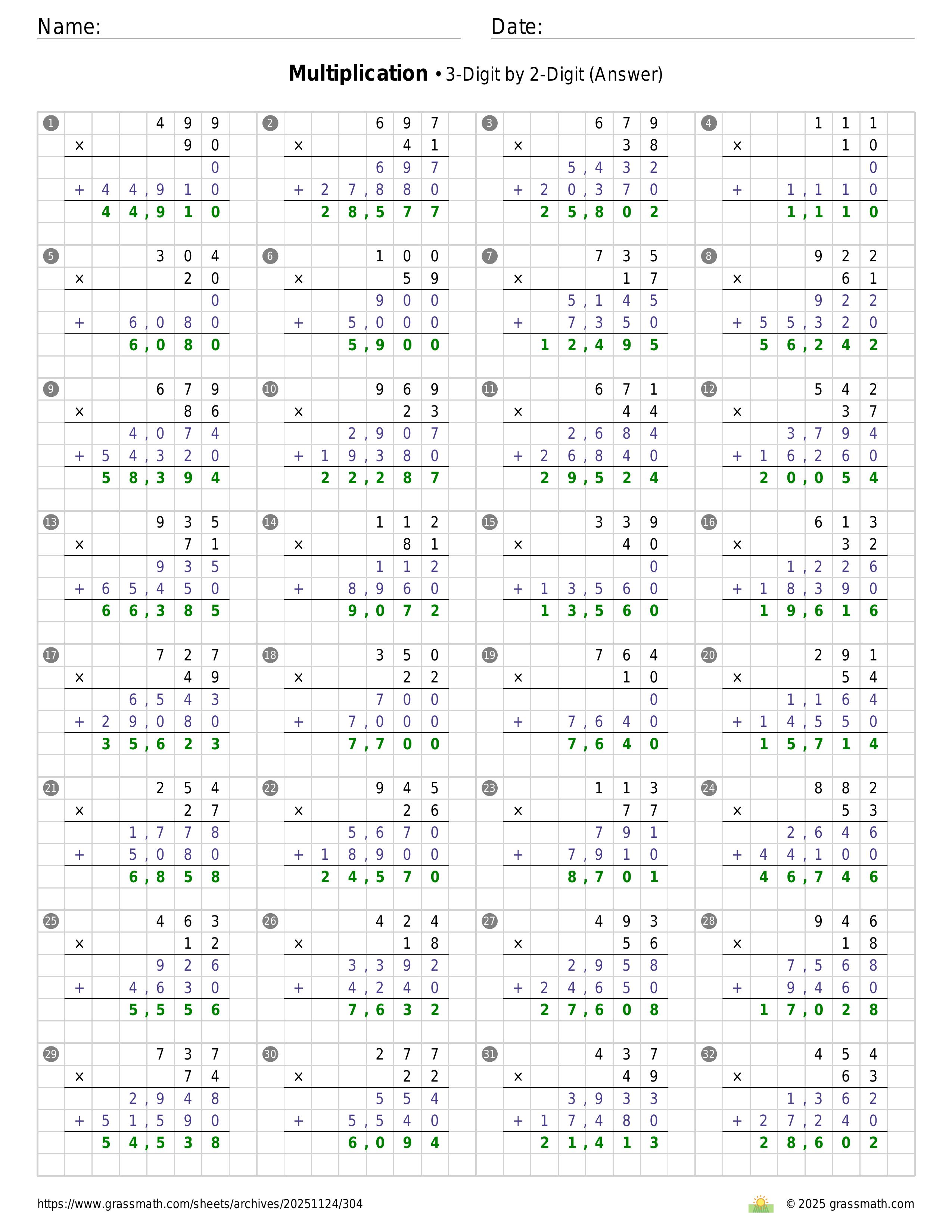 Multiplication 3-Digit by 2-Digit