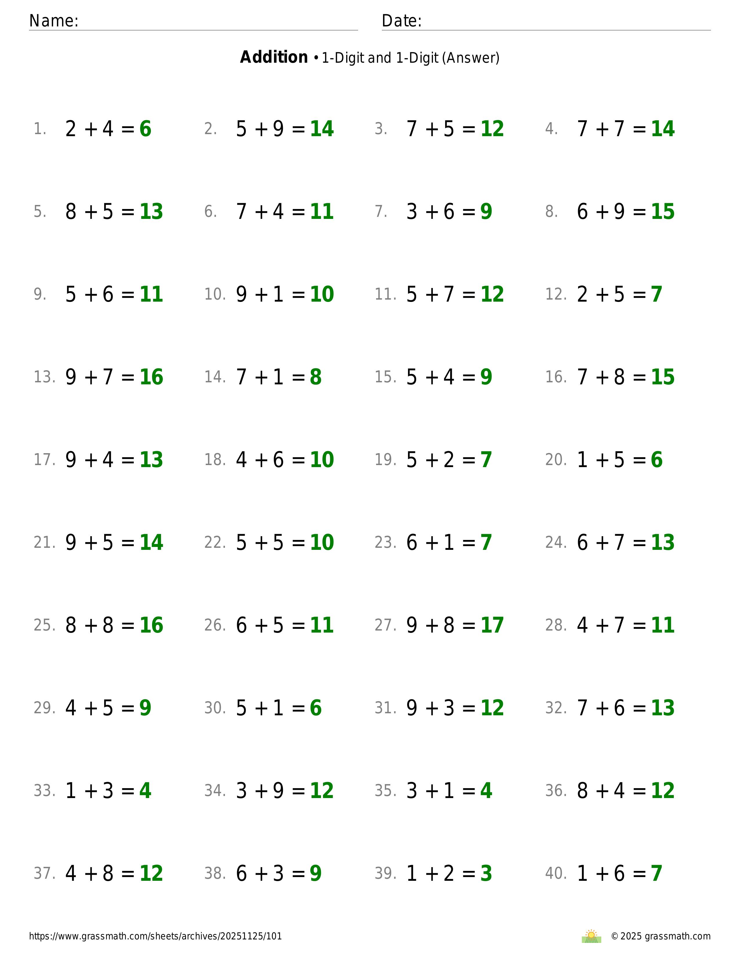 Addition 1-Digit and 1-Digit