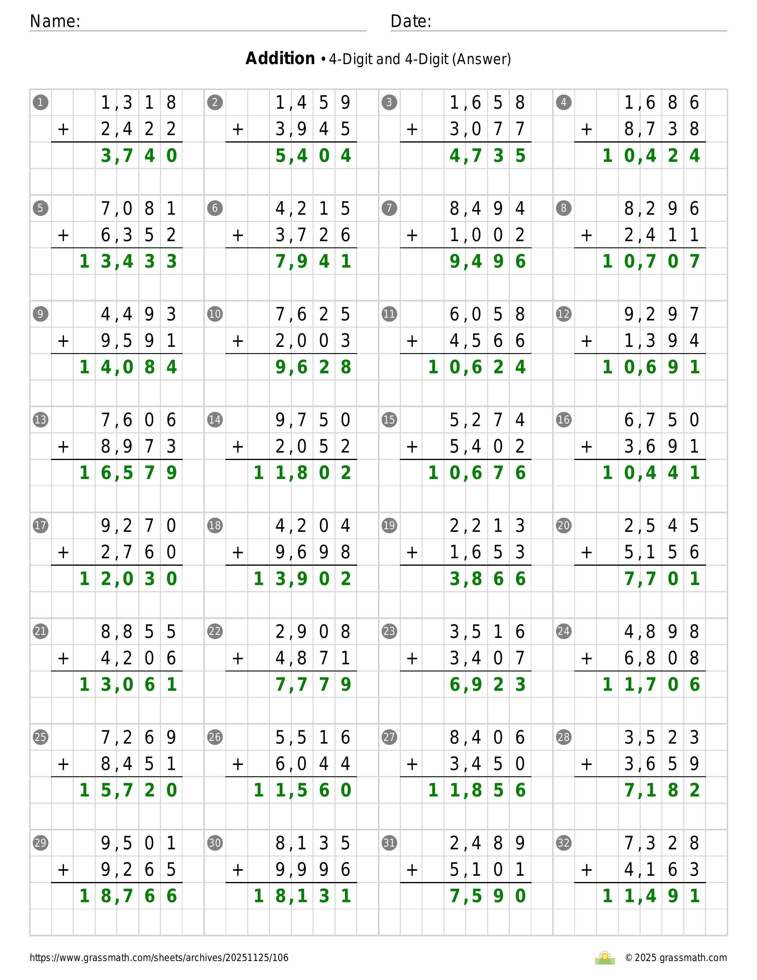 Addition 4-Digit and 4-Digit