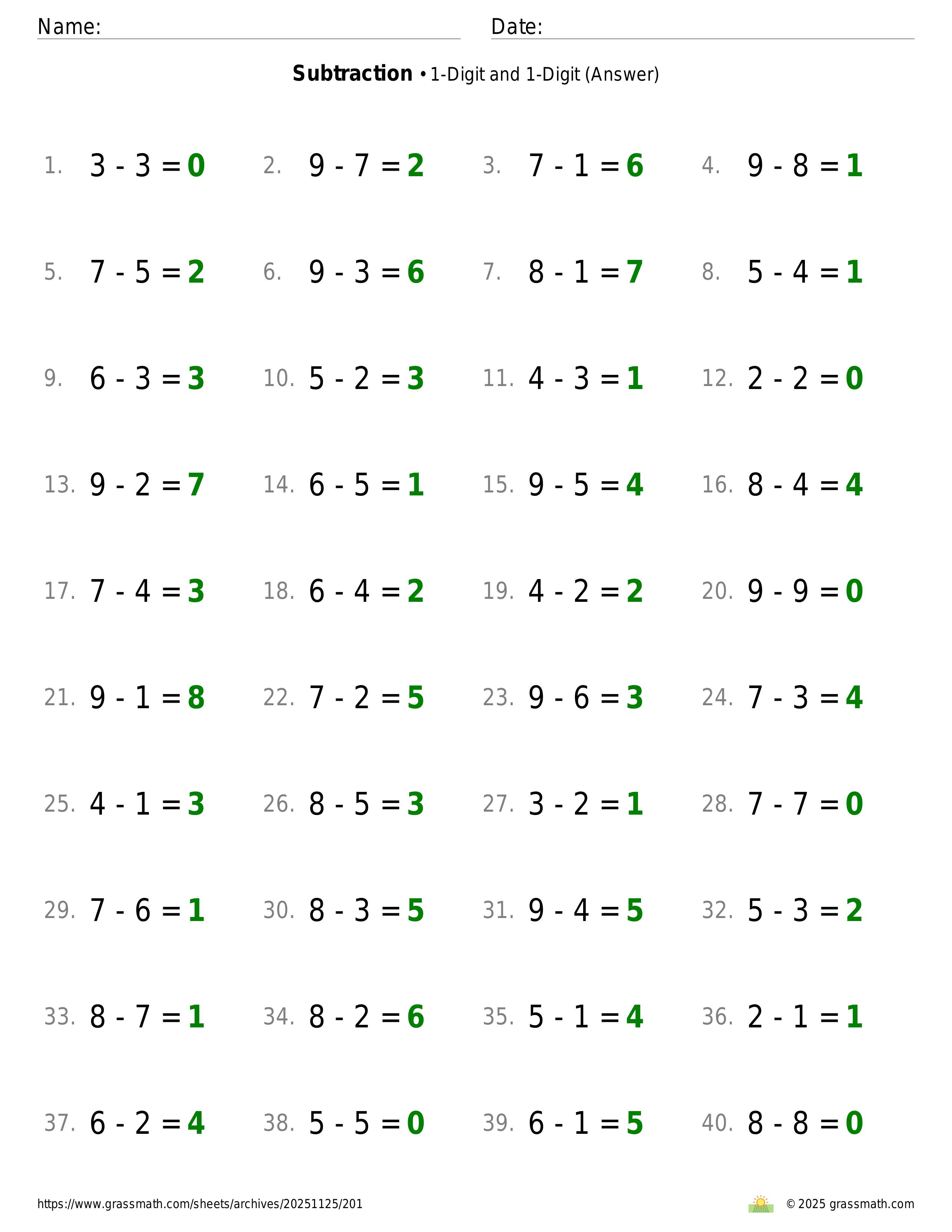 Subtraction 1-Digit and 1-Digit