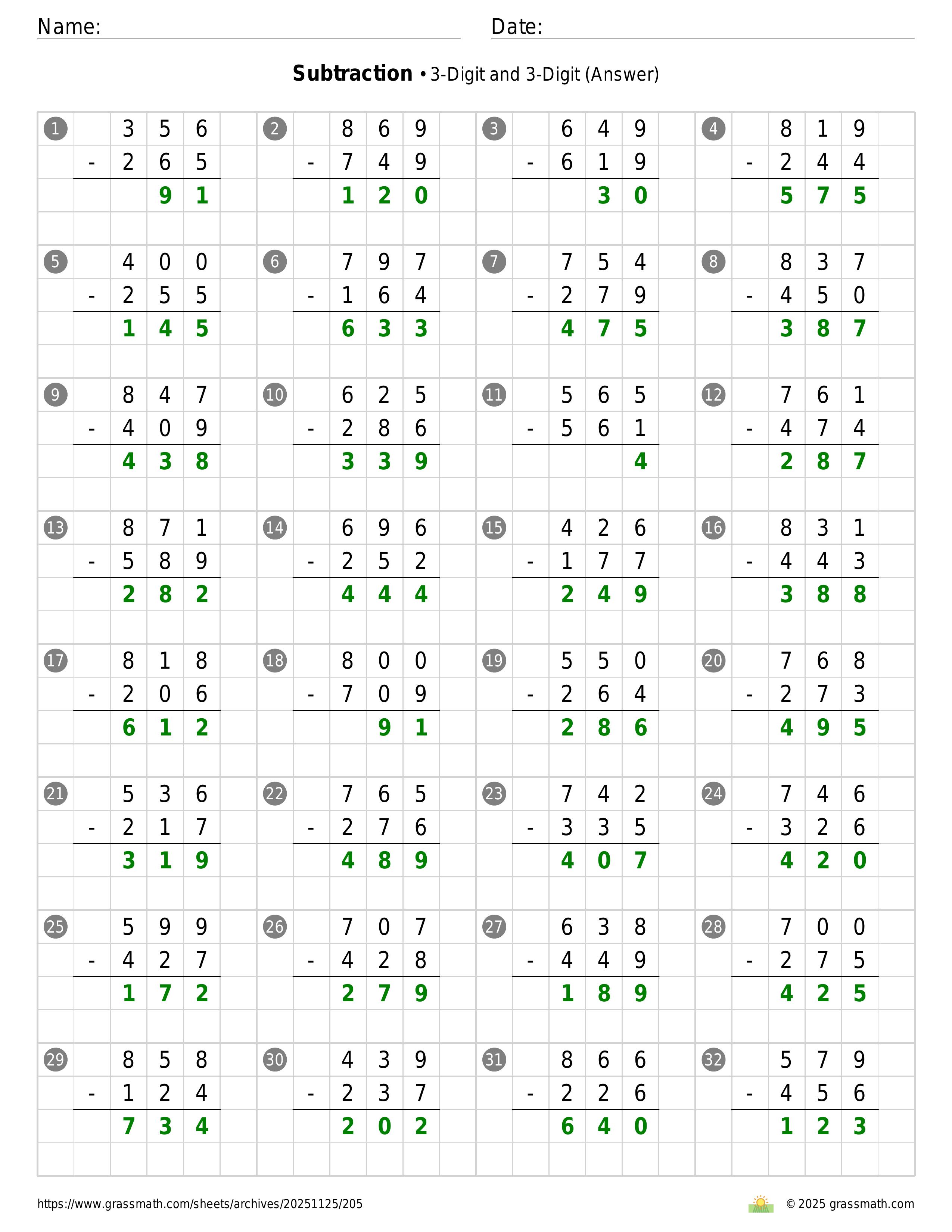 Subtraction 3-Digit and 3-Digit
