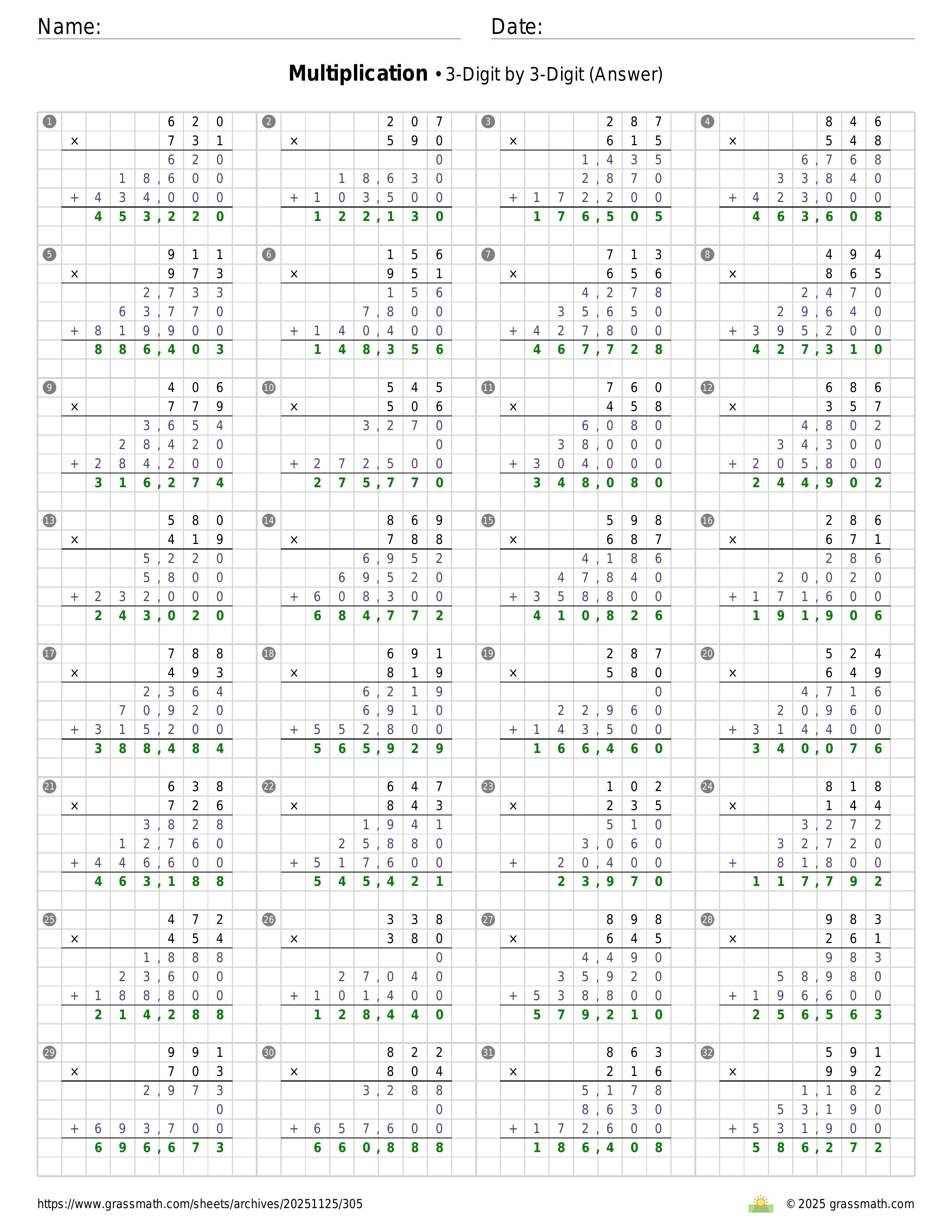 Multiplication 3-Digit by 3-Digit