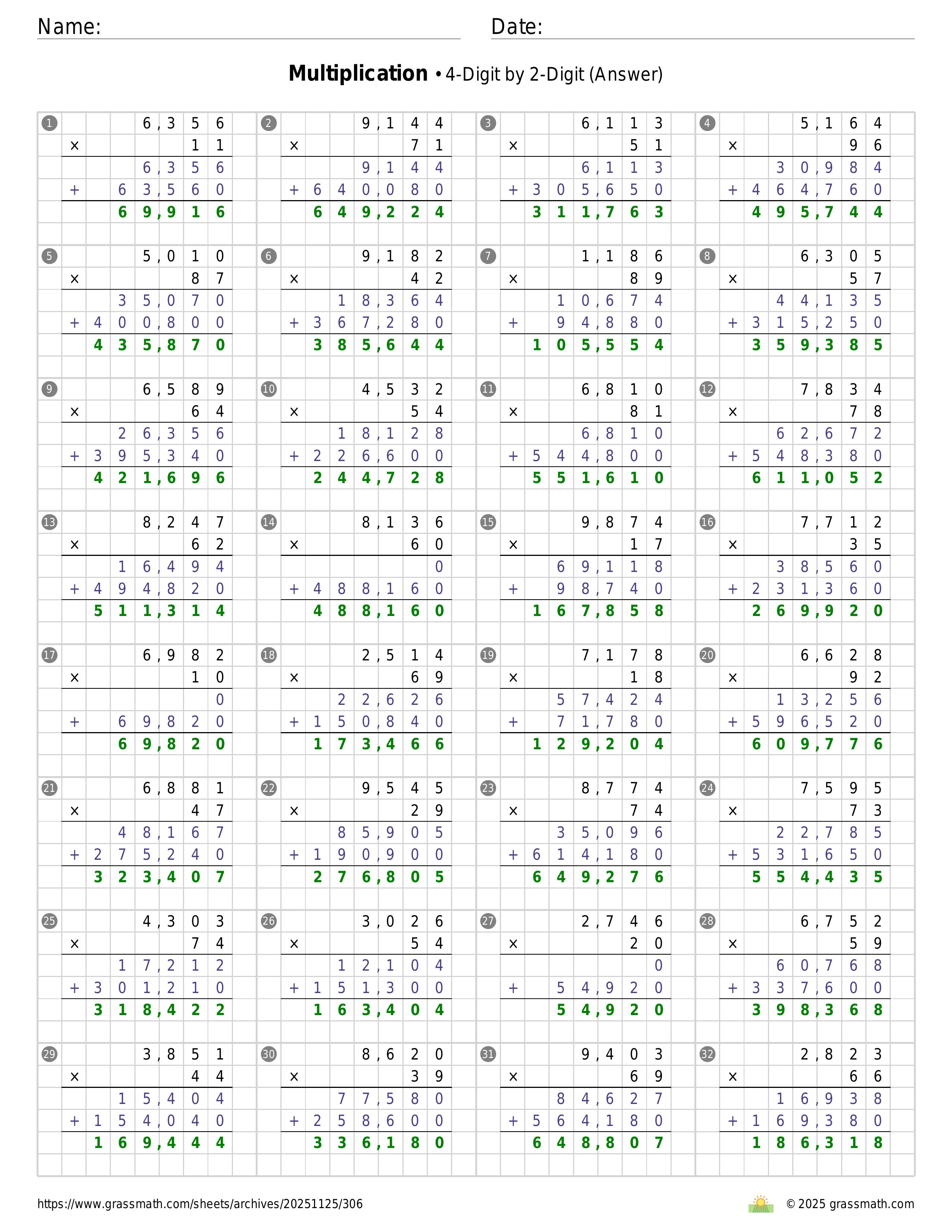 Multiplication 4-Digit by 2-Digit