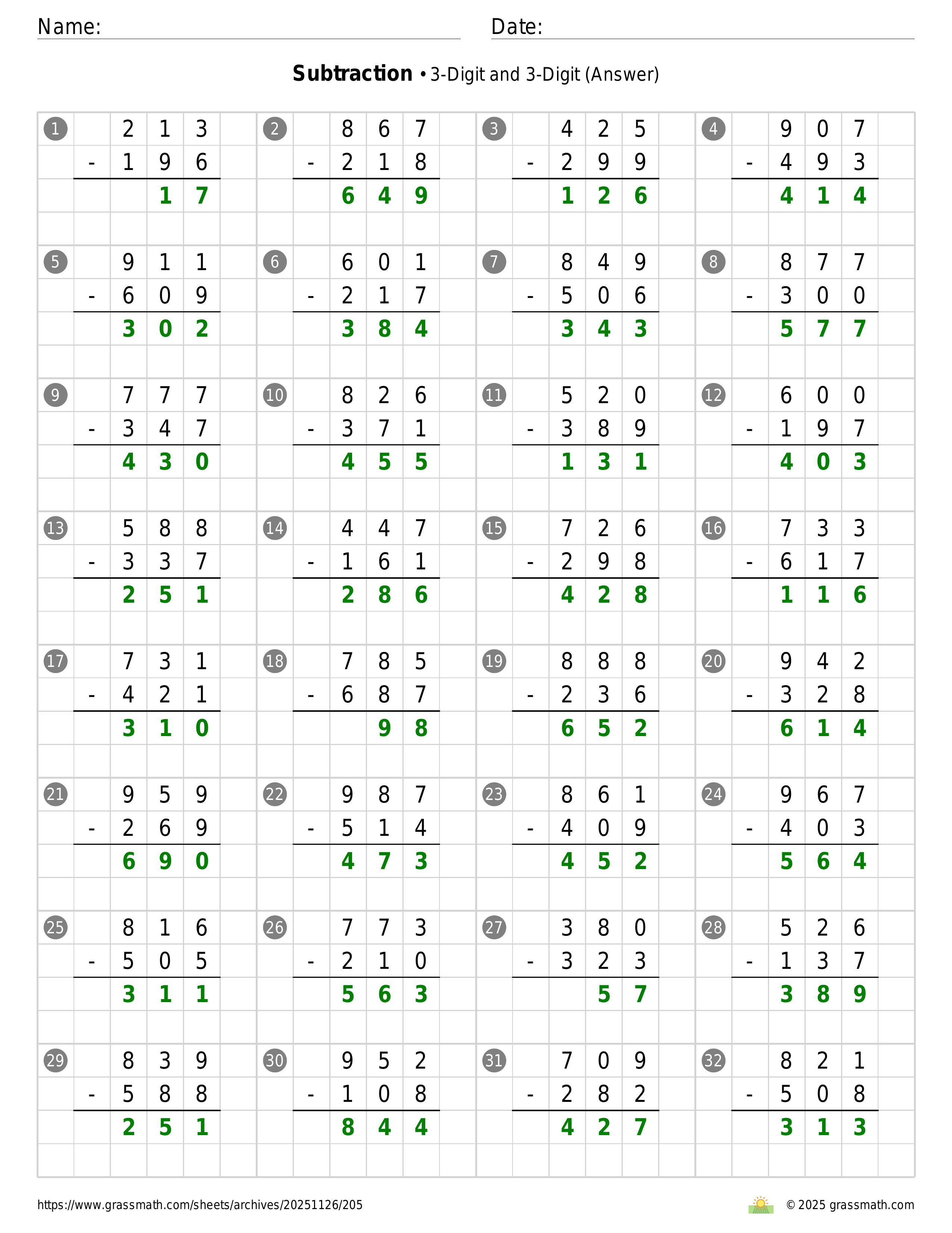 Subtraction 3-Digit and 3-Digit