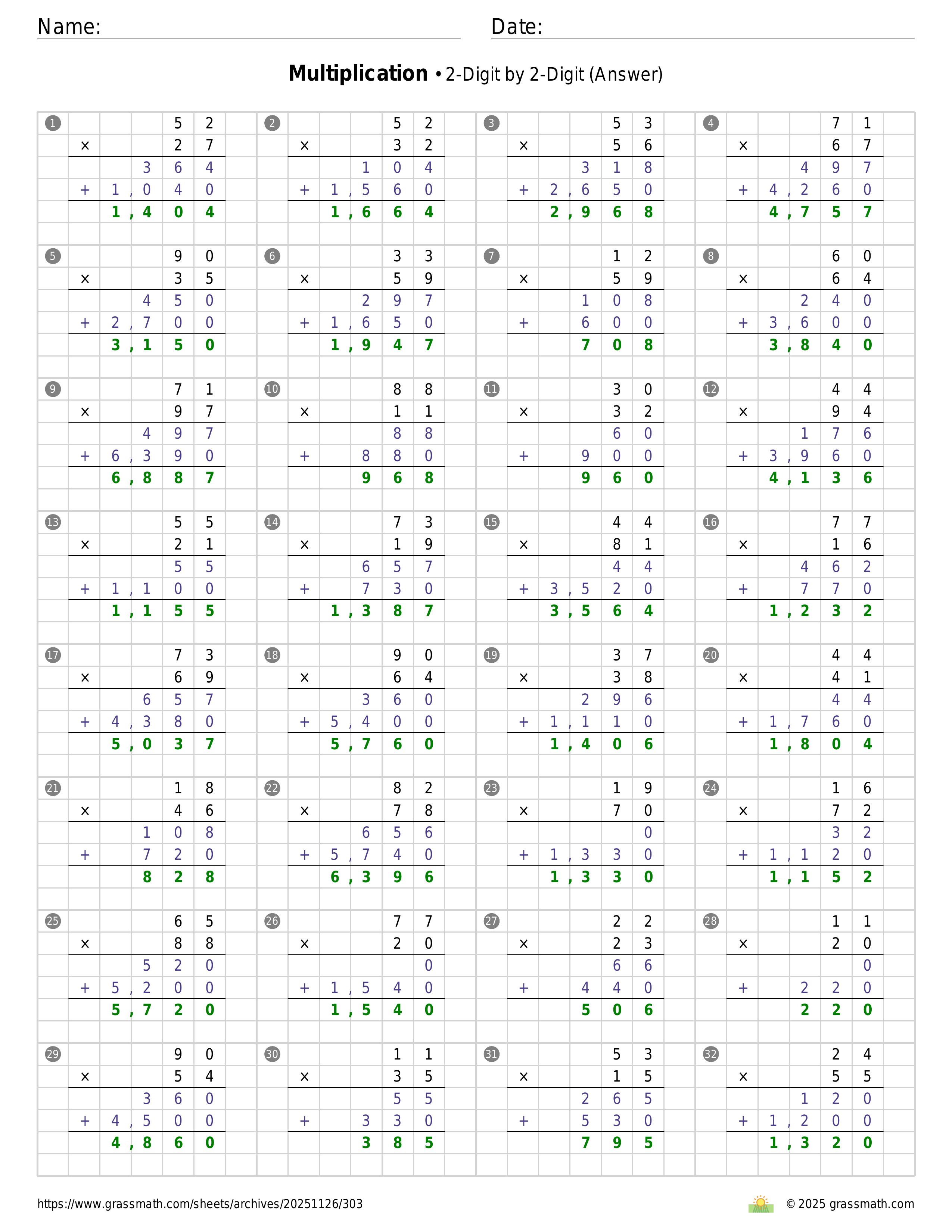 Multiplication 2-Digit by 2-Digit
