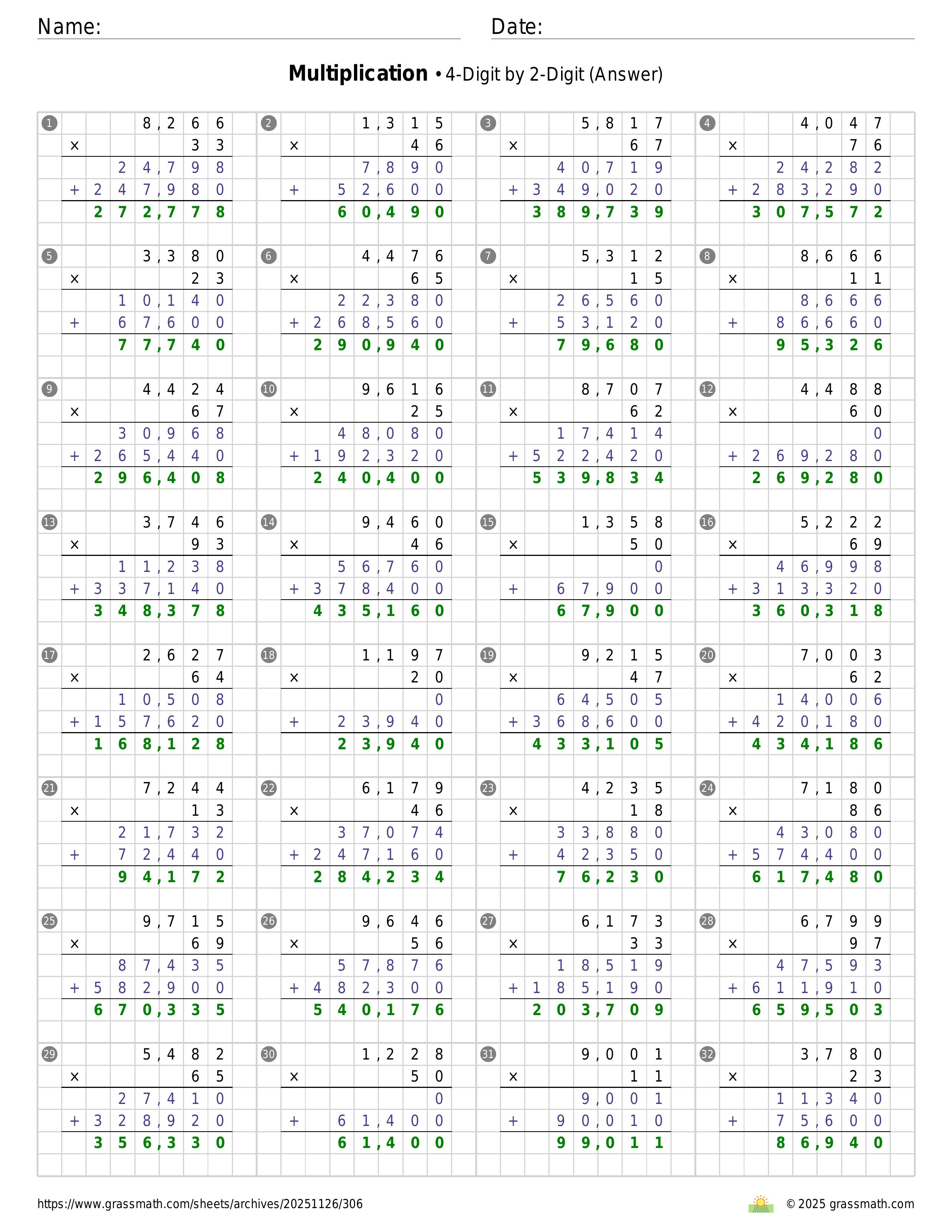 Multiplication 4-Digit by 2-Digit