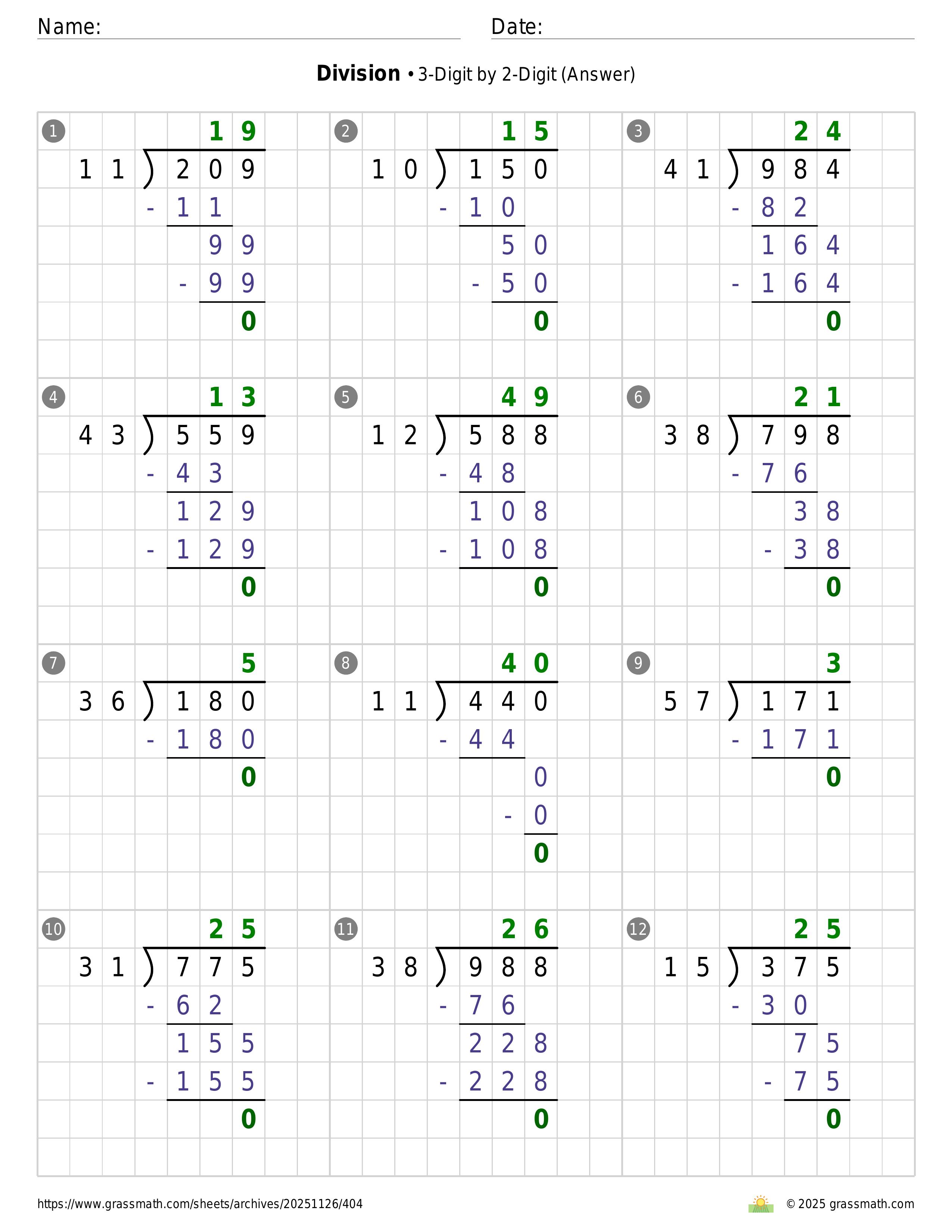 Division 3-Digit by 2-Digit