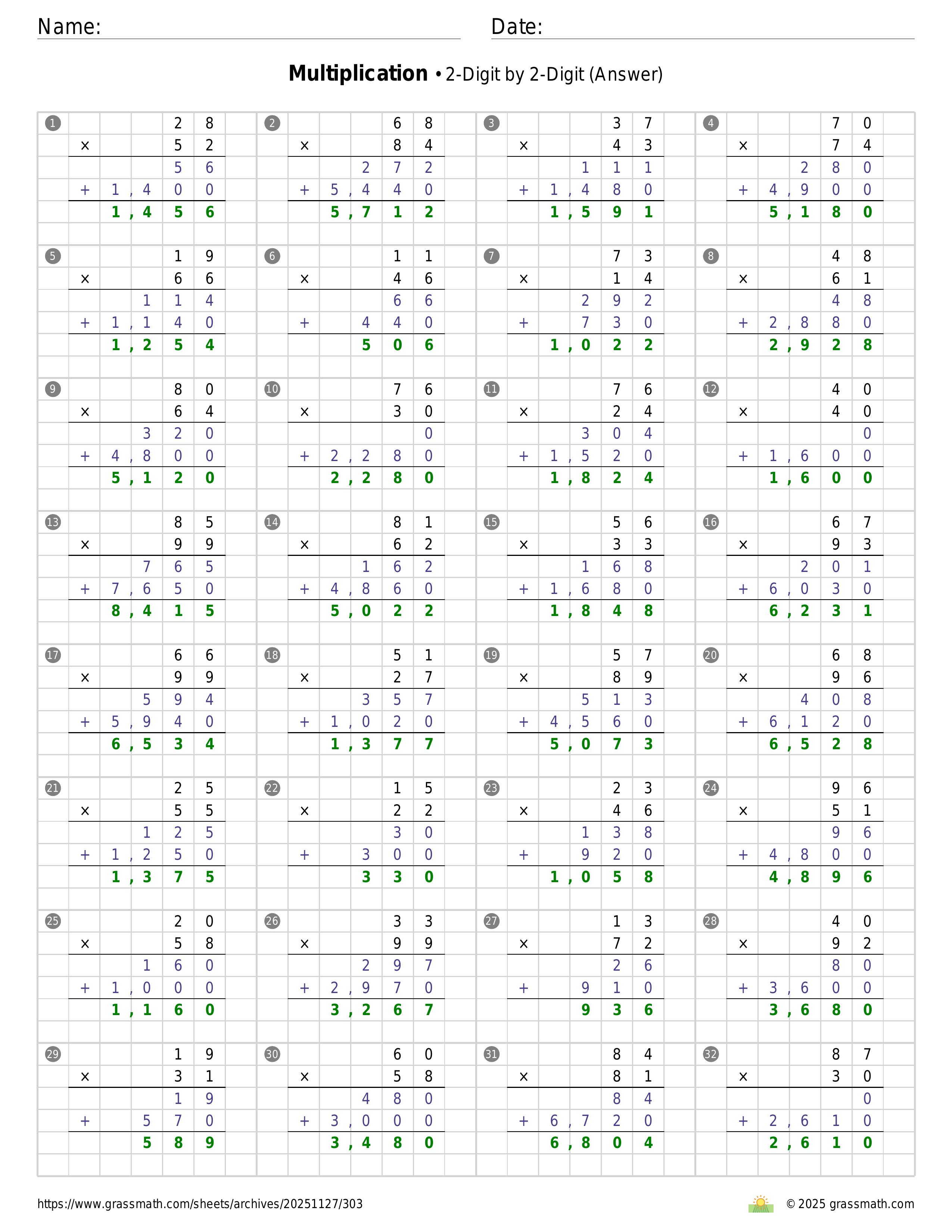 Multiplication 2-Digit by 2-Digit