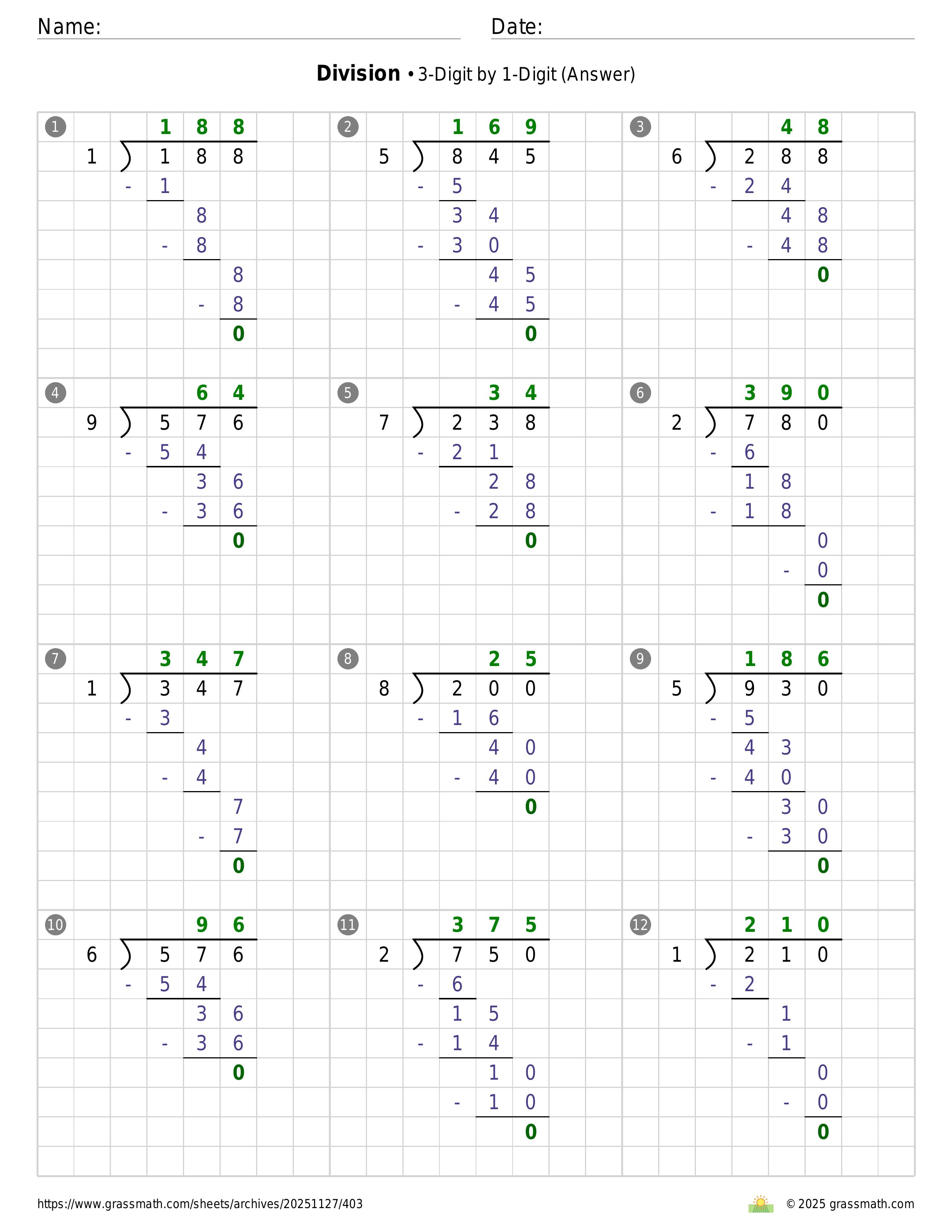 Division 3-Digit by 1-Digit