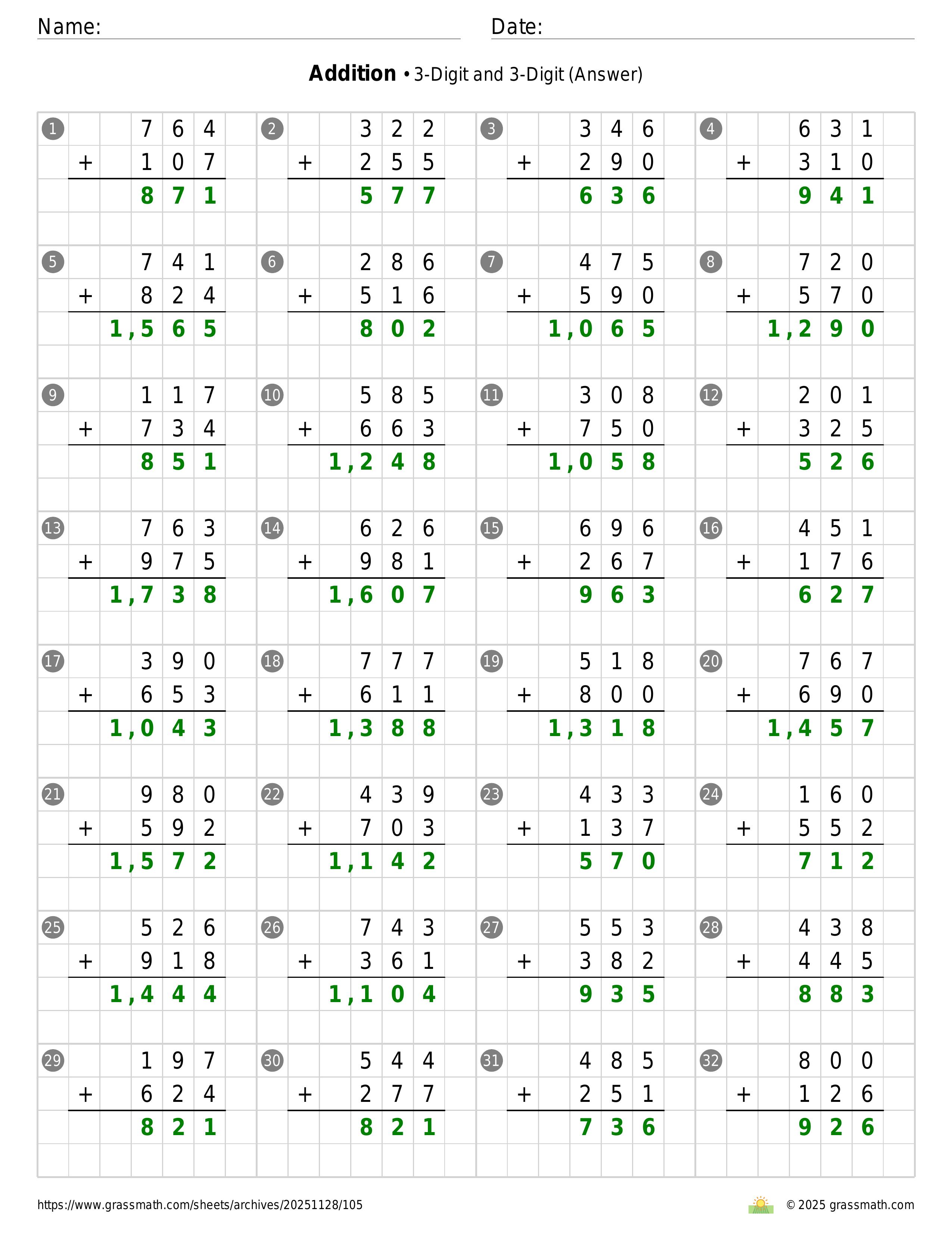 Addition 3-Digit and 3-Digit