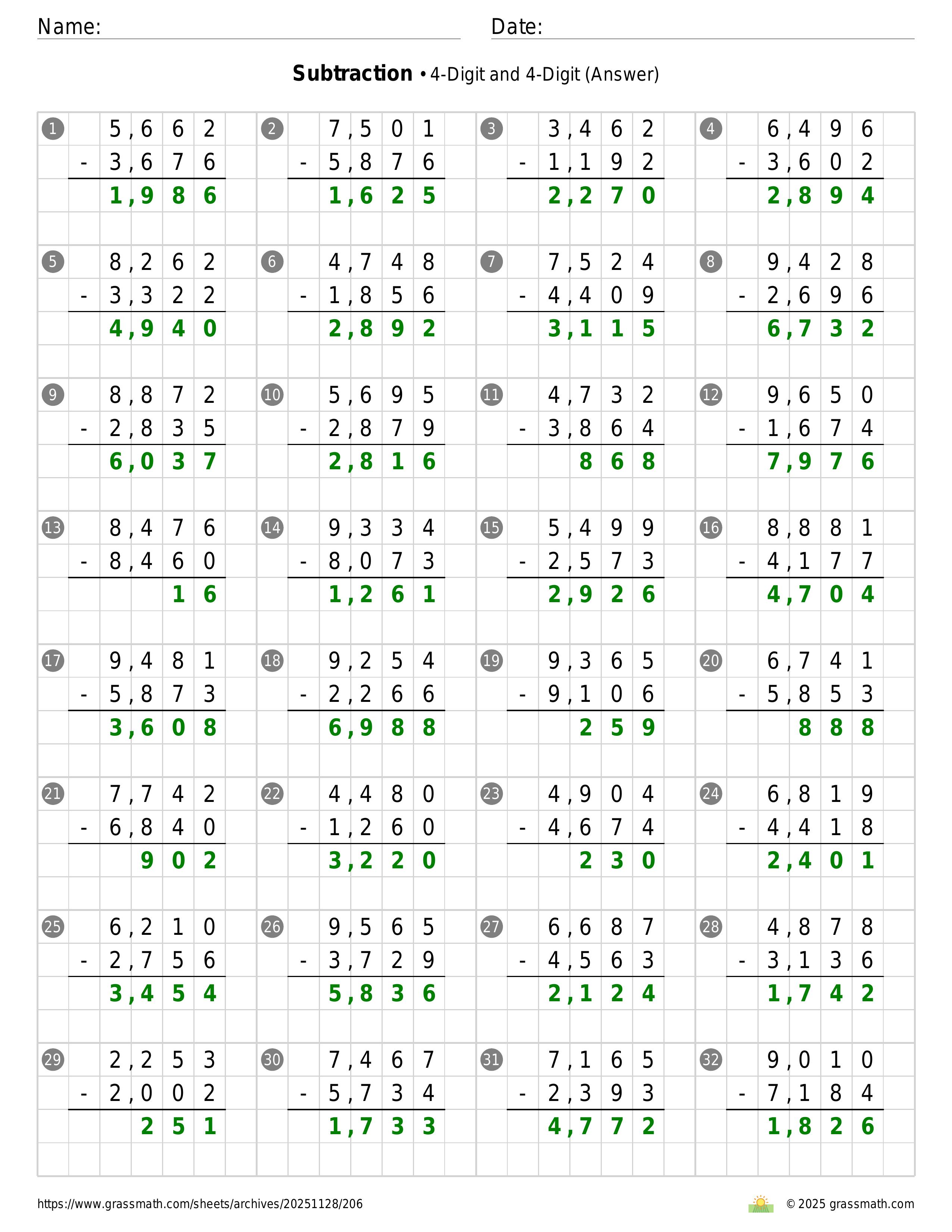 Subtraction 4-Digit and 4-Digit