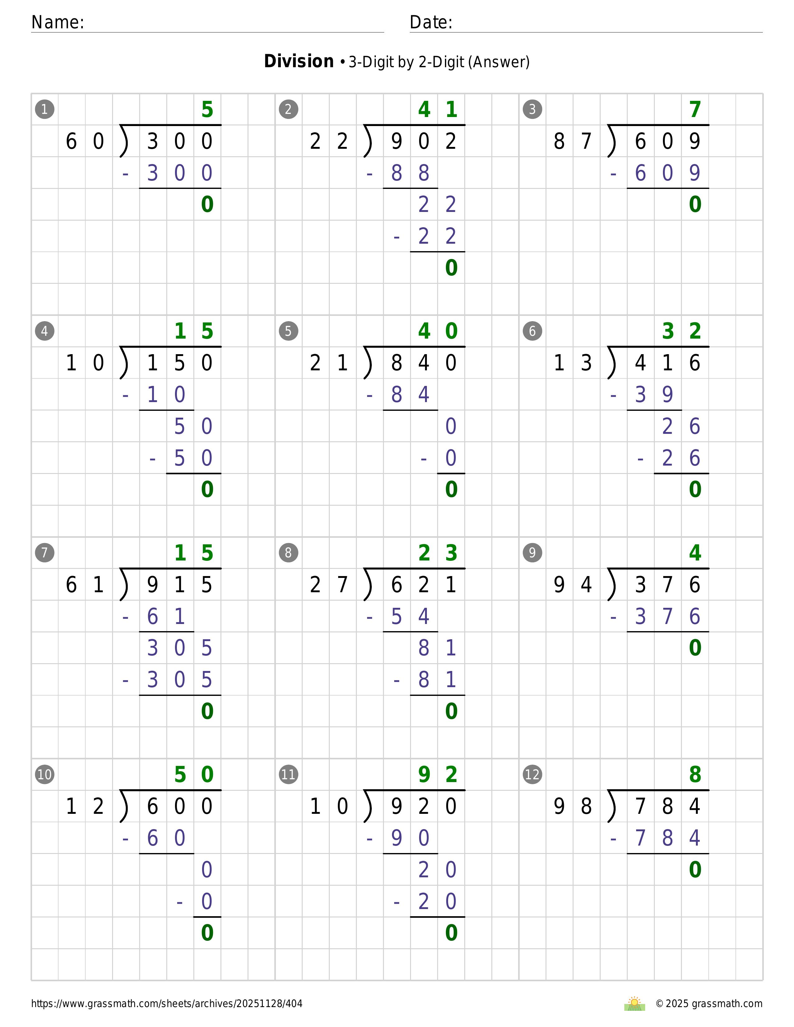Division 3-Digit by 2-Digit