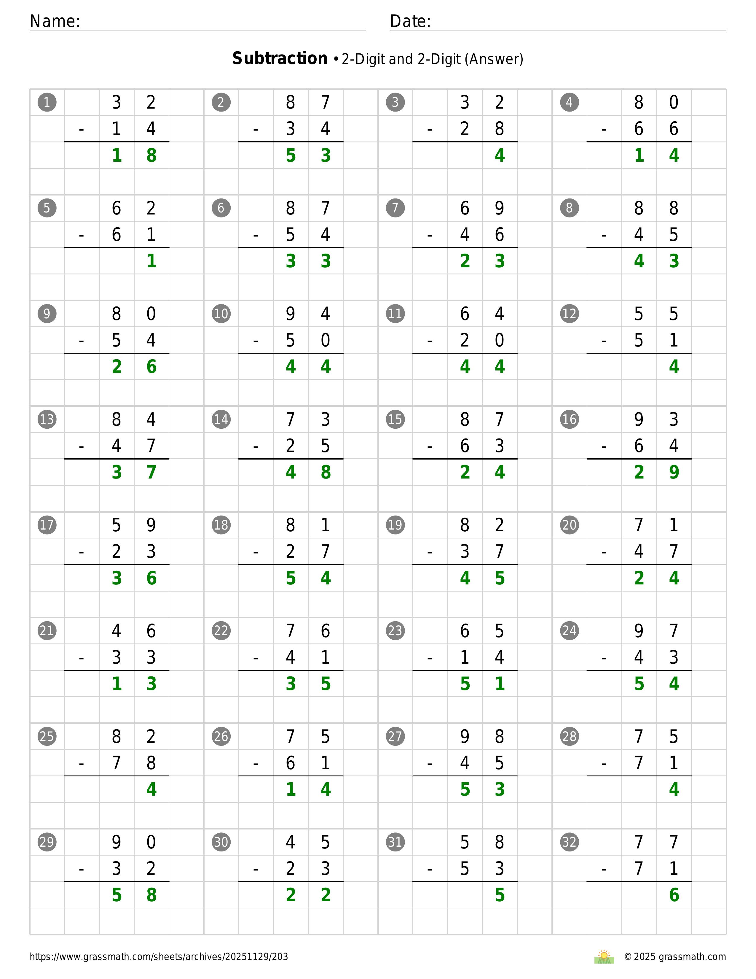 Subtraction 2-Digit and 2-Digit