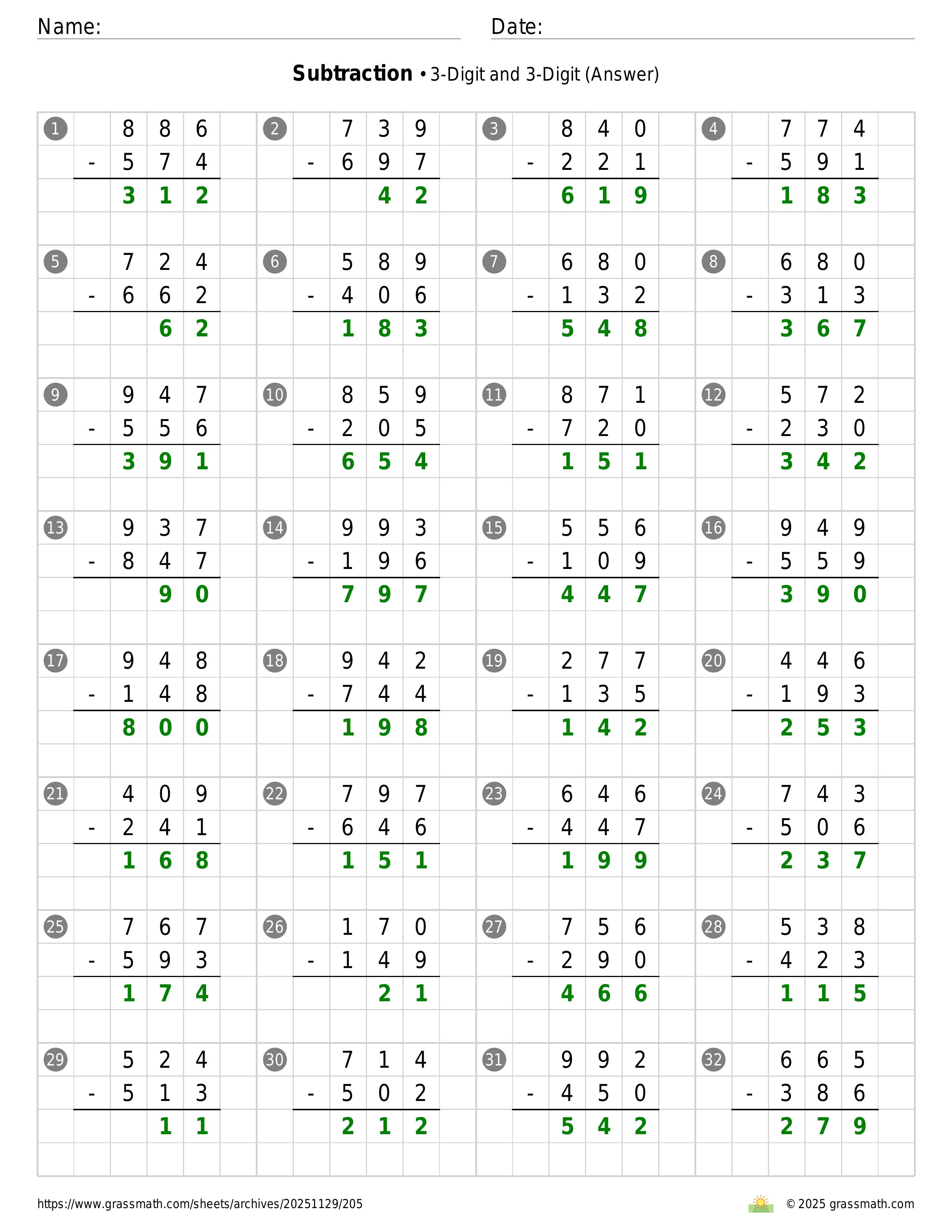 Subtraction 3-Digit and 3-Digit
