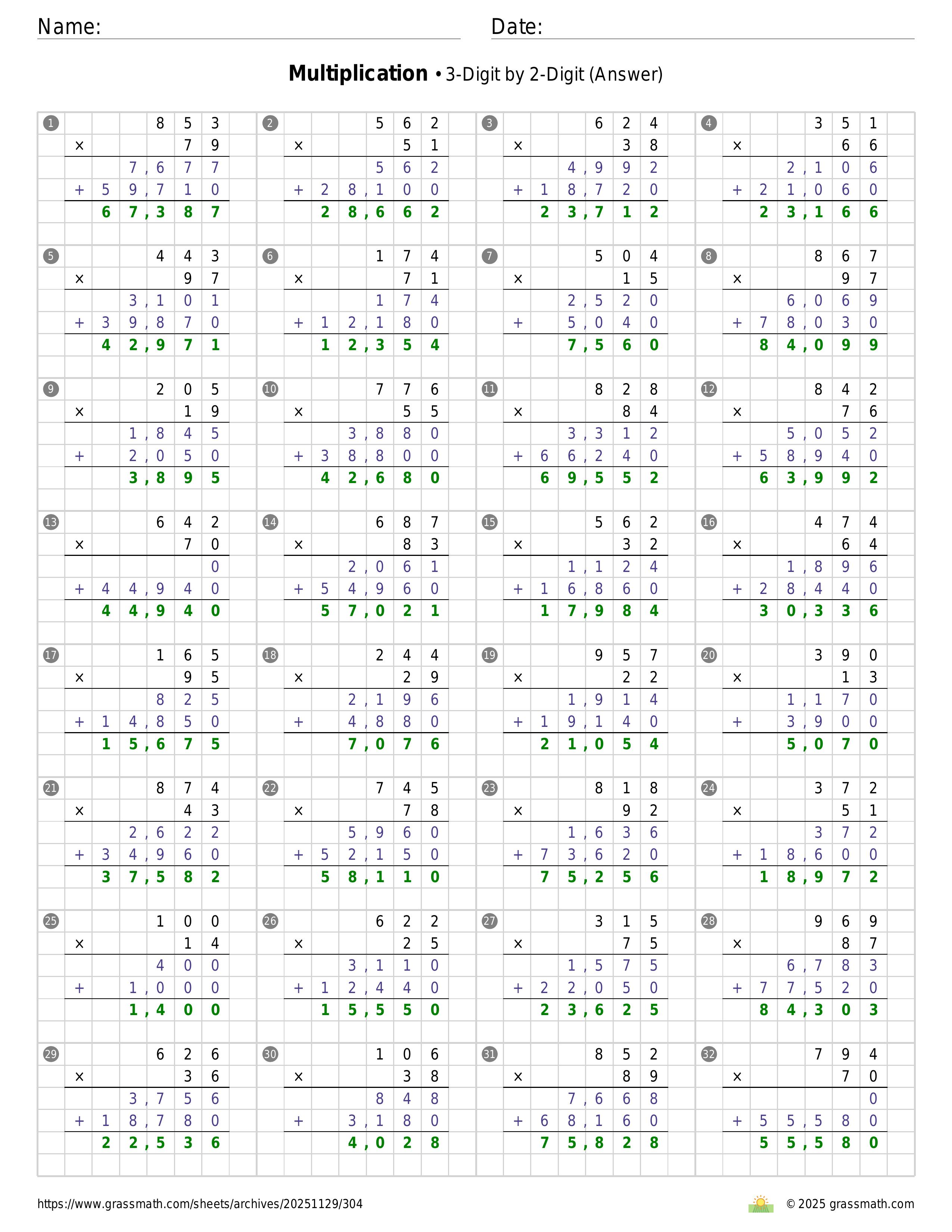 Multiplication 3-Digit by 2-Digit