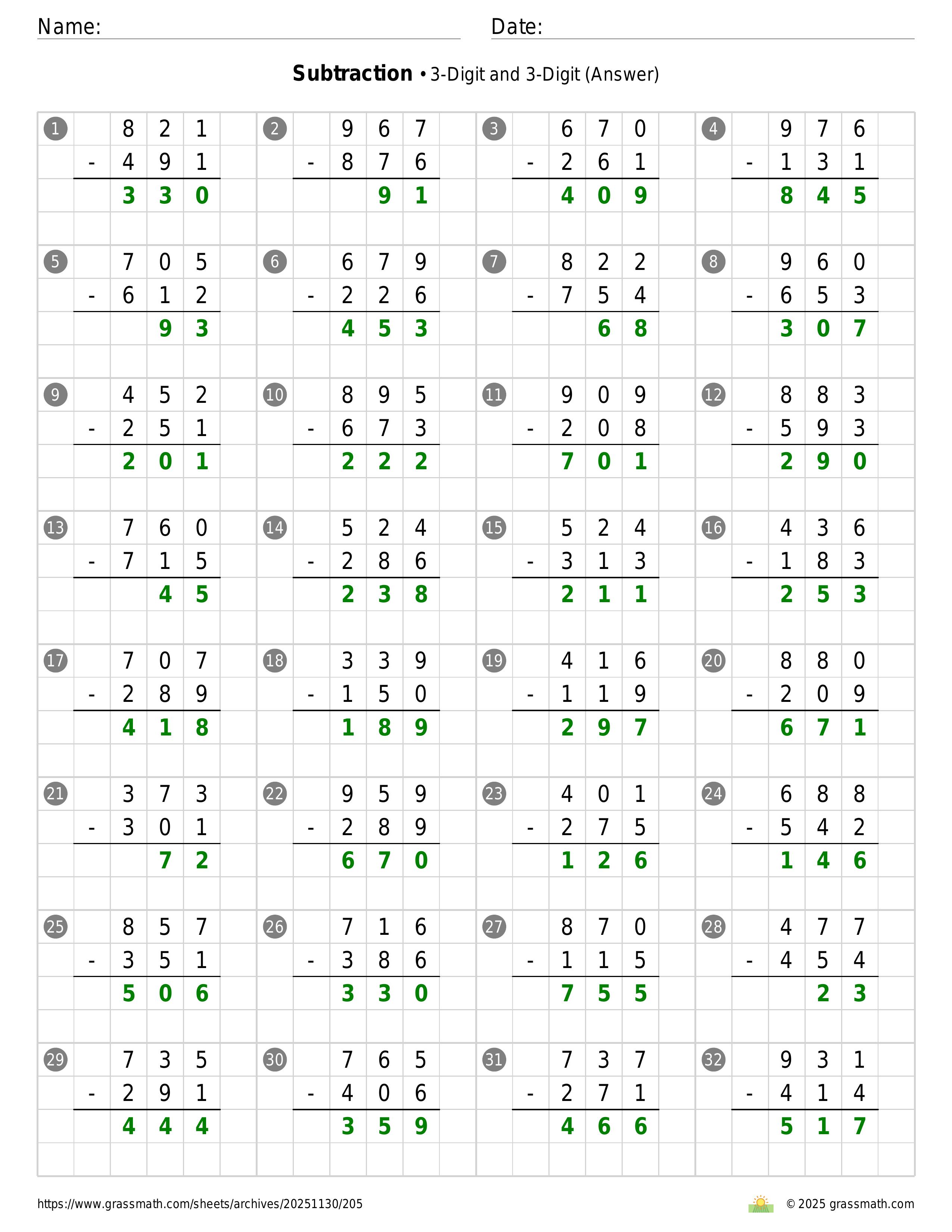 Subtraction 3-Digit and 3-Digit