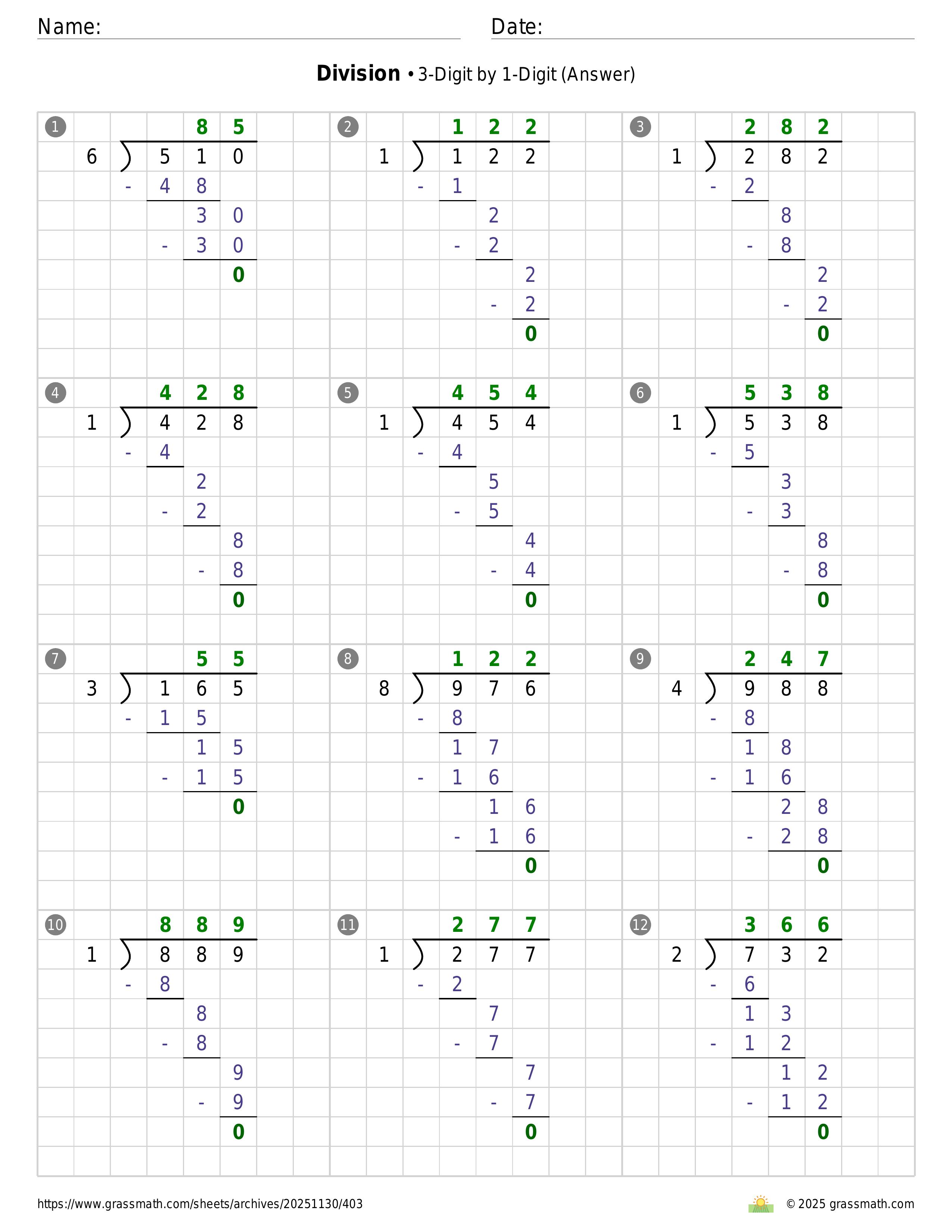 Division 3-Digit by 1-Digit