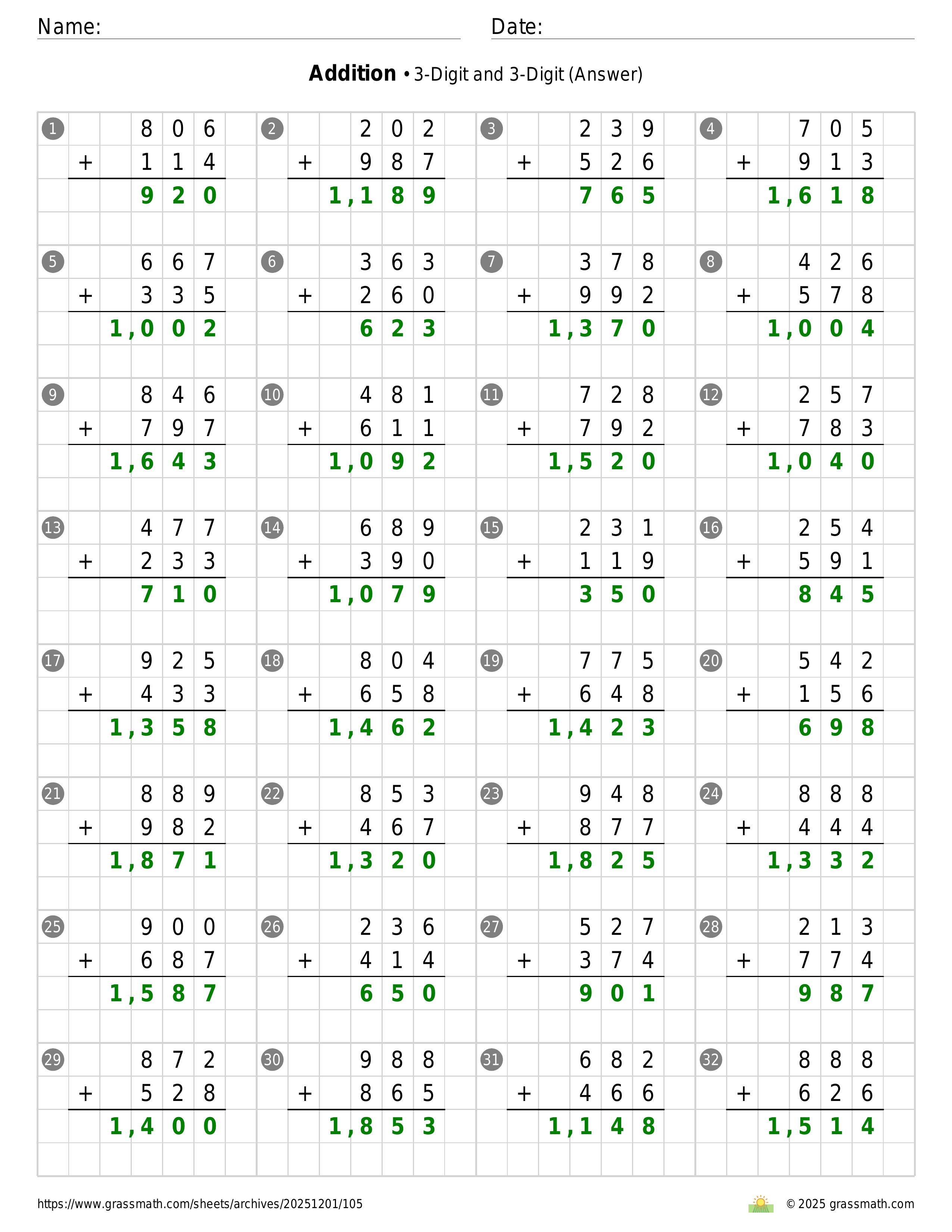 Addition 3-Digit and 3-Digit