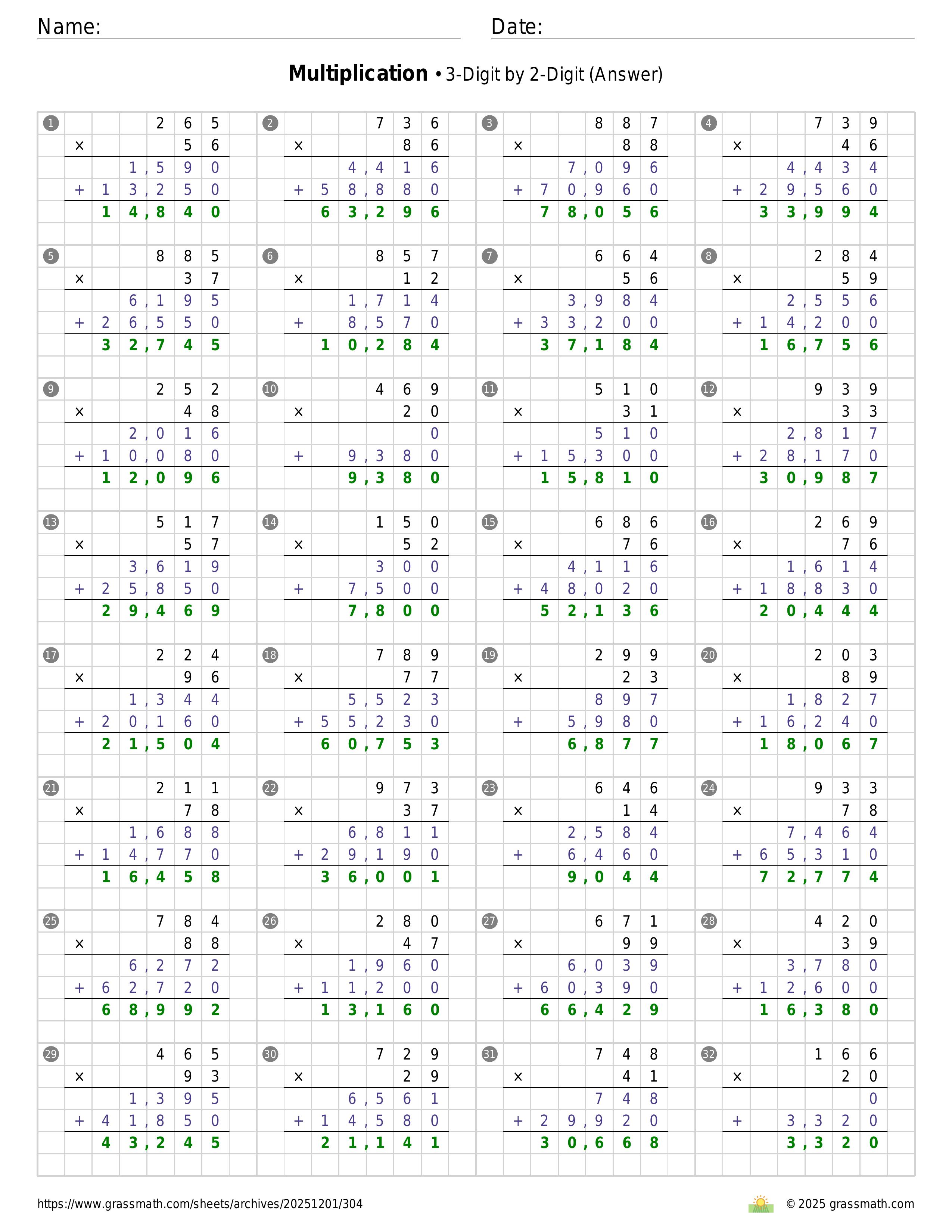 Multiplication 3-Digit by 2-Digit