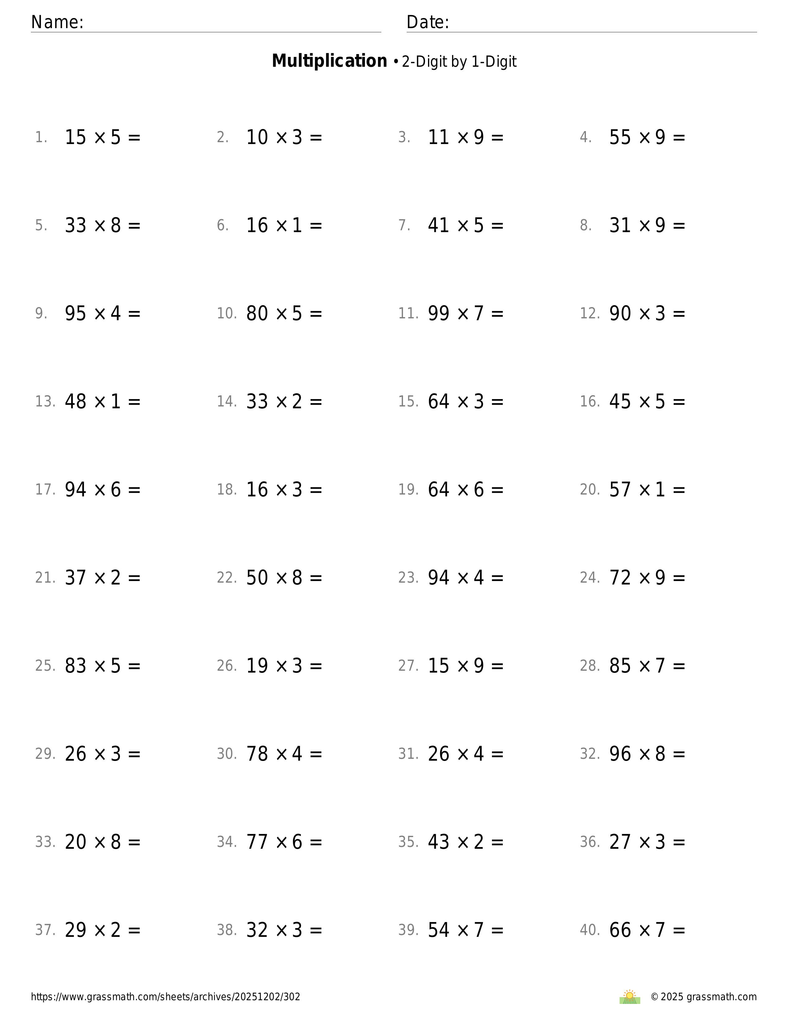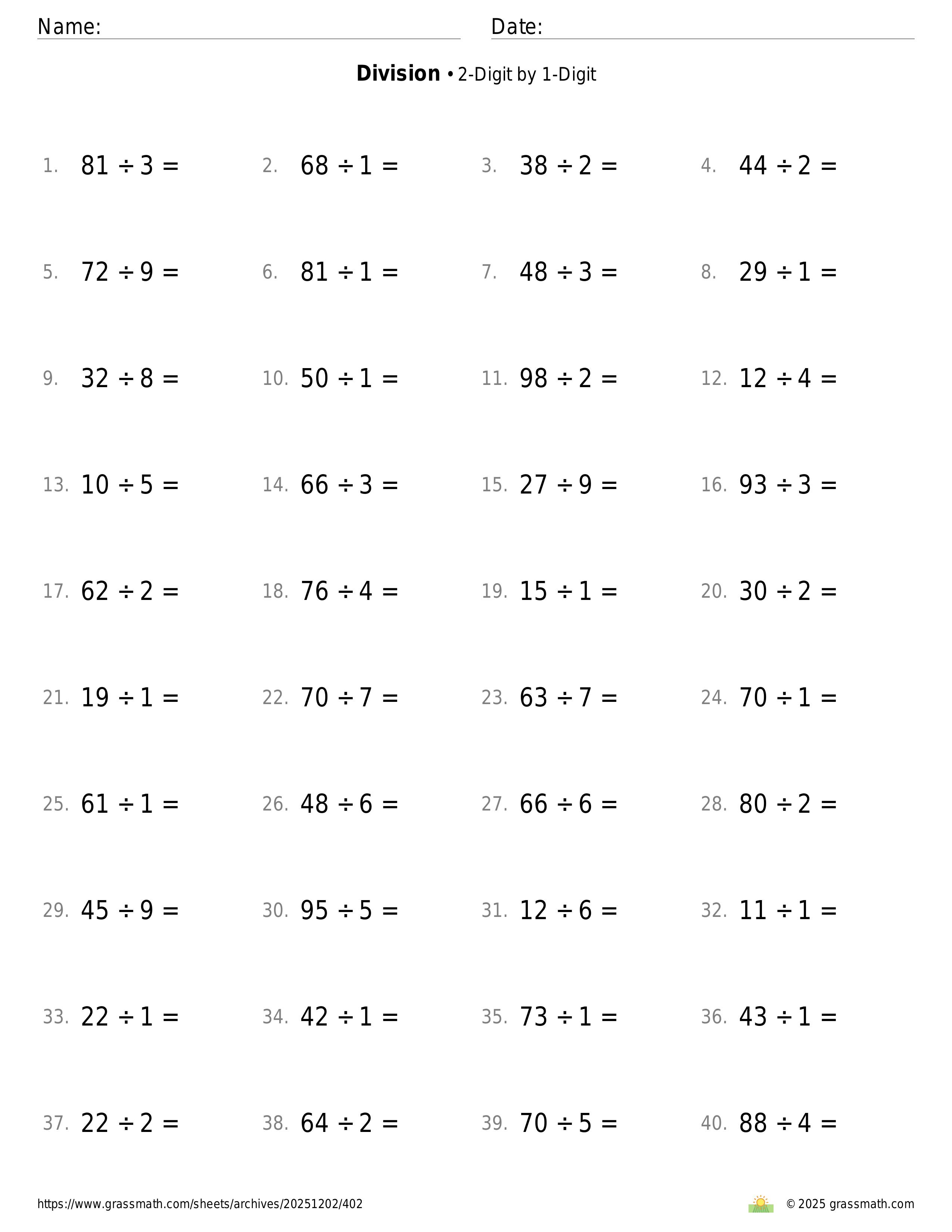 2-Digit by 1-Digit