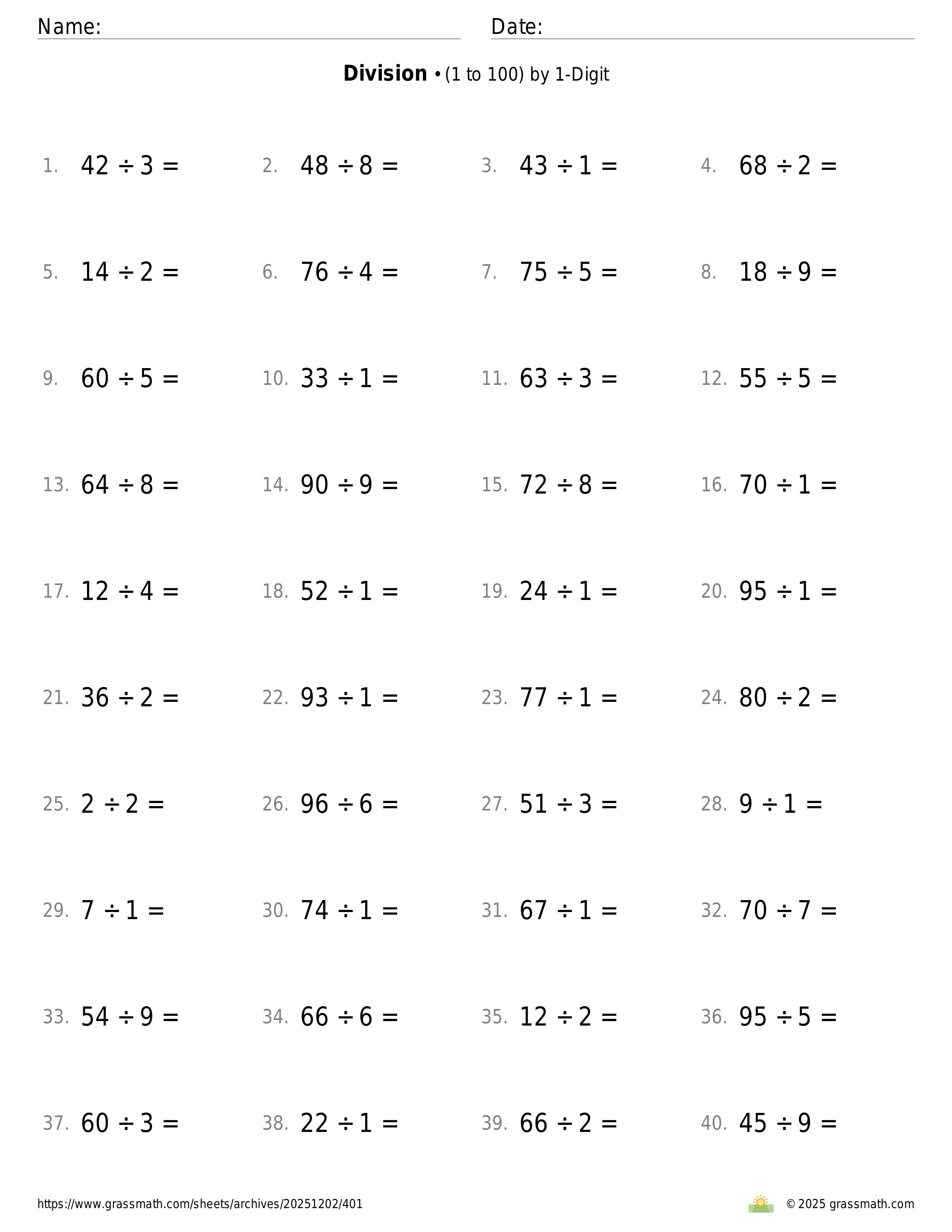 3-Digit by 1-Digit