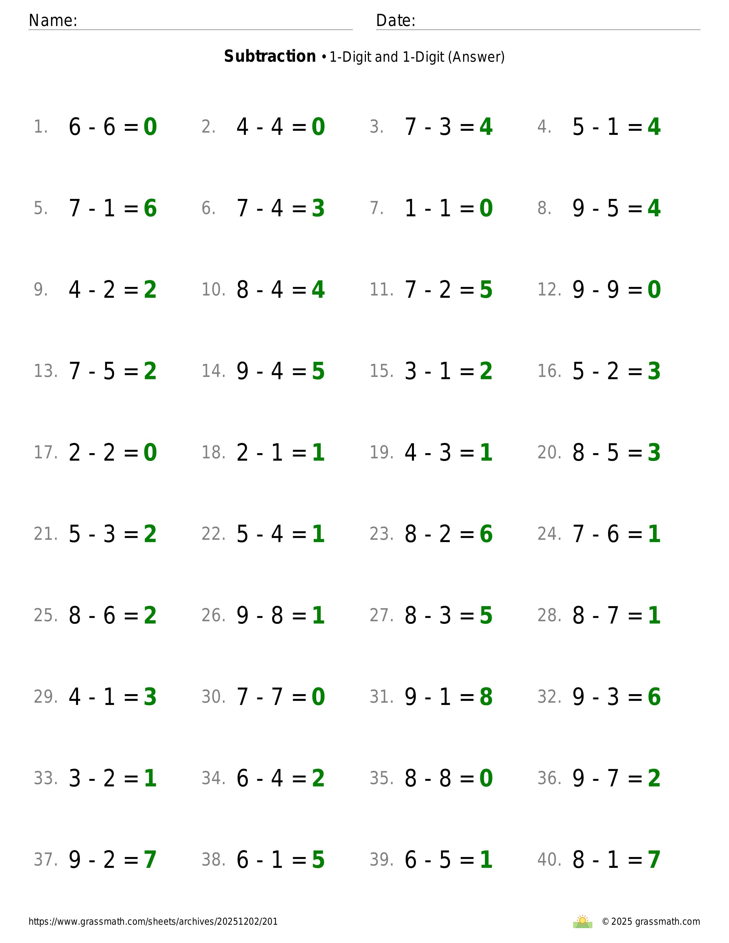 Subtraction 1-Digit and 1-Digit