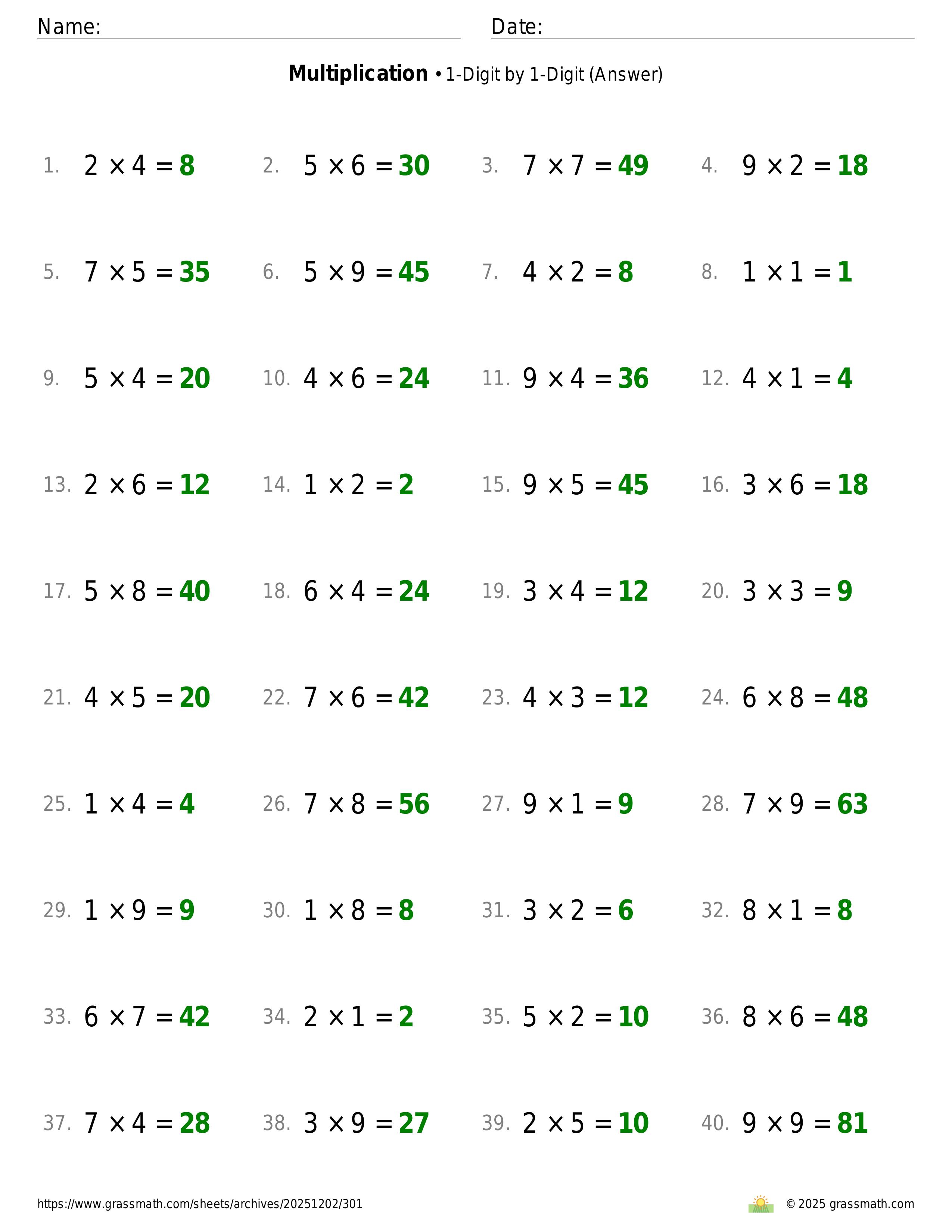 Multiplication 1-Digit by 1-Digit