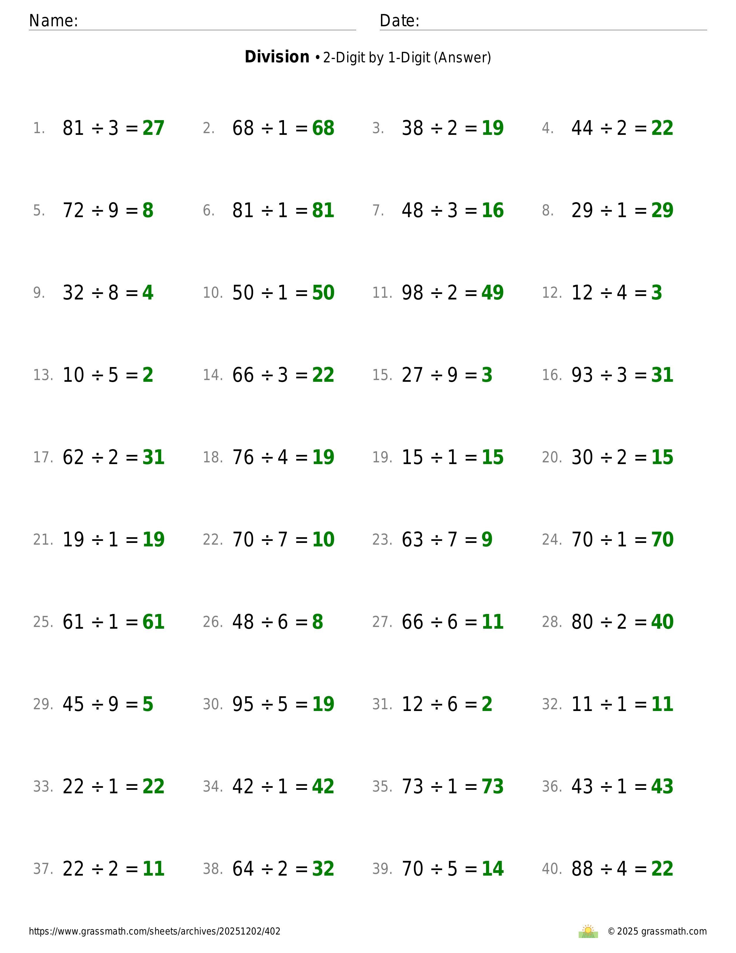 Division 2-Digit by 1-Digit