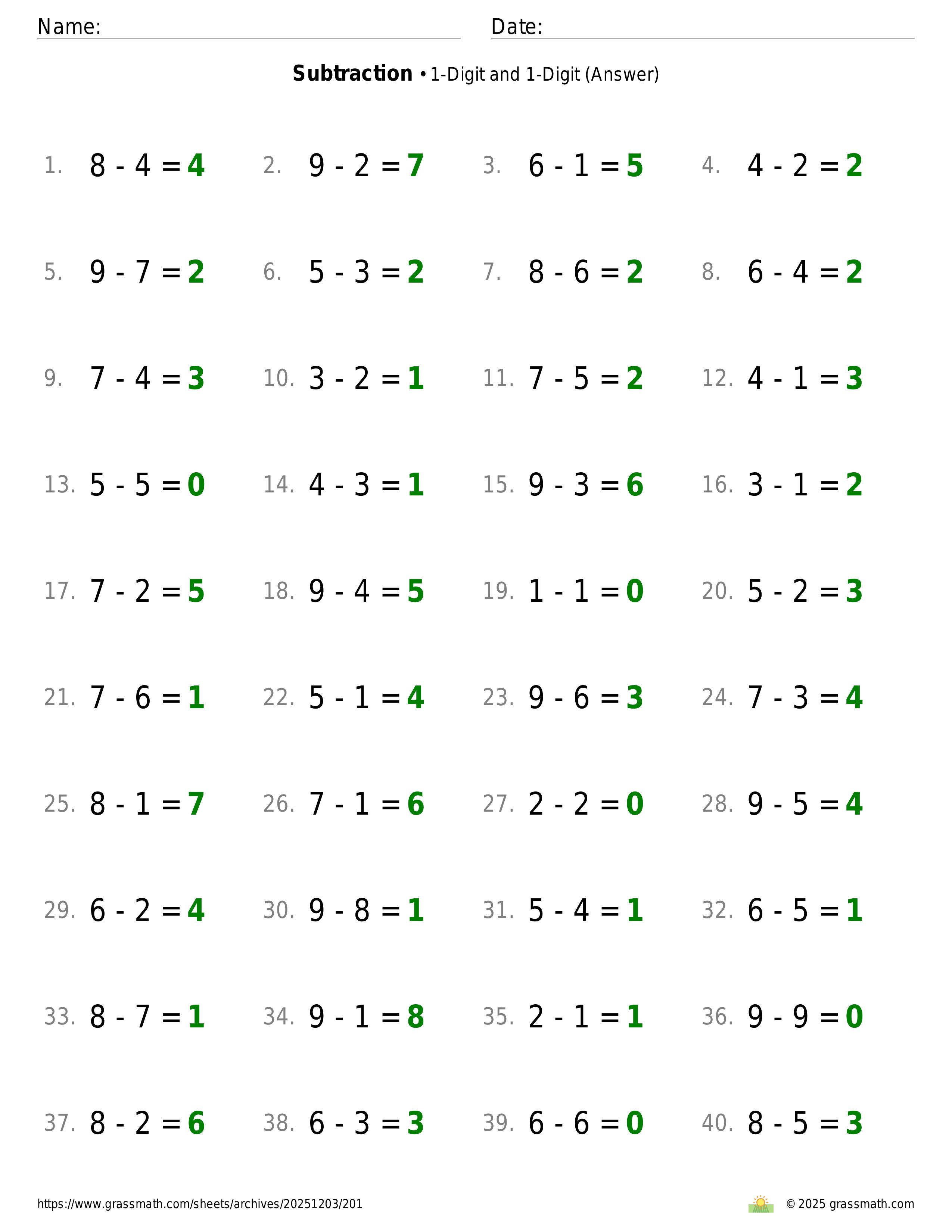 Subtraction 1-Digit and 1-Digit