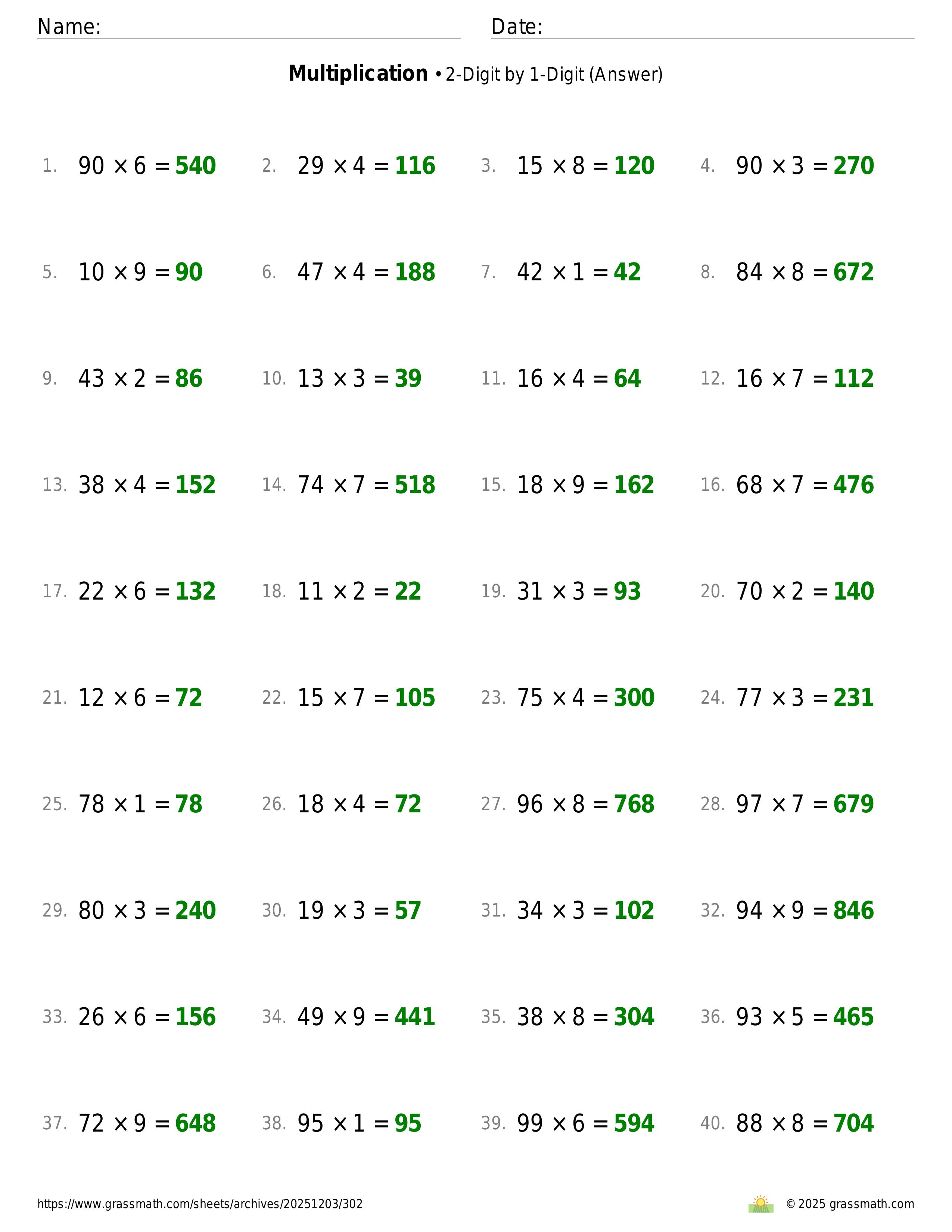 Multiplication 2-Digit by 1-Digit
