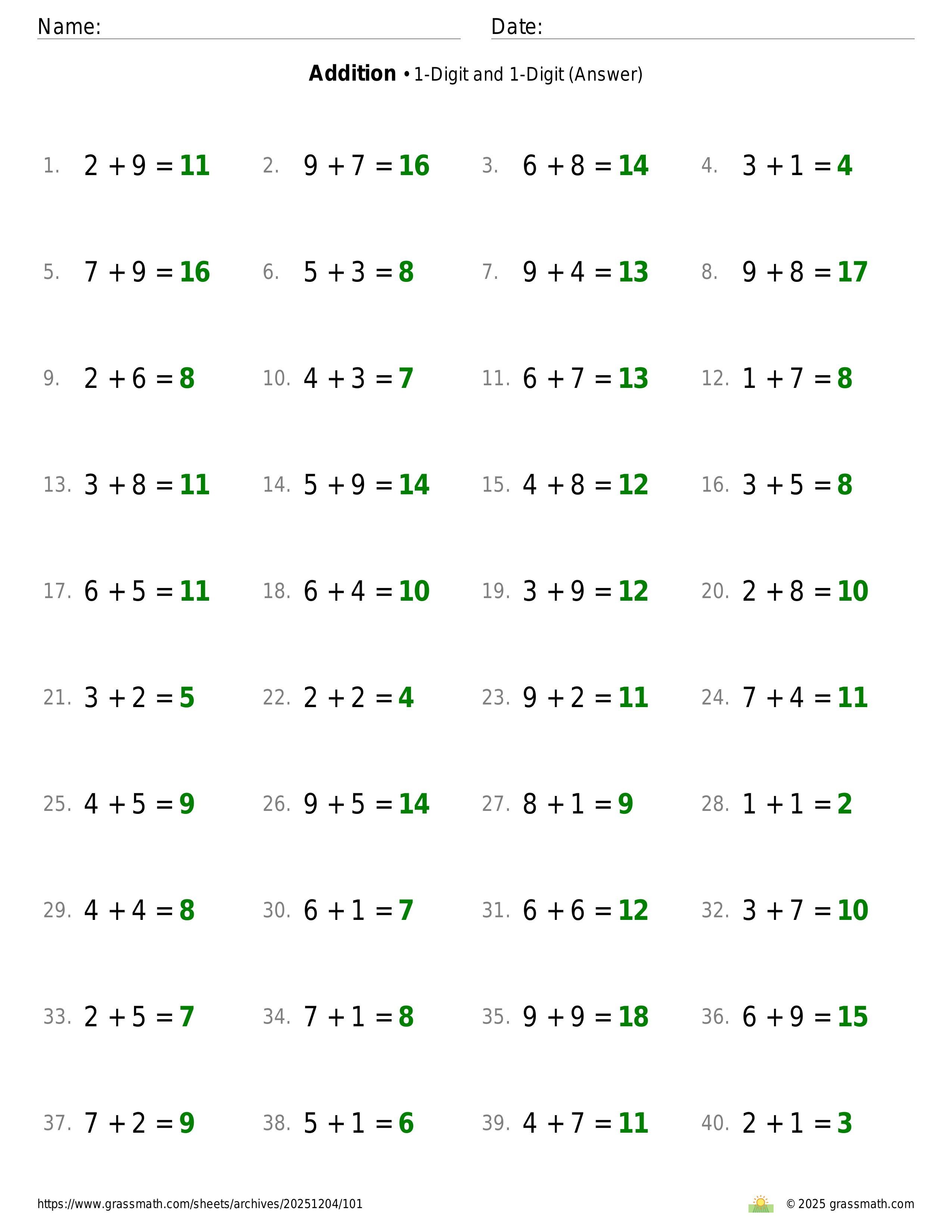 Addition 1-Digit and 1-Digit