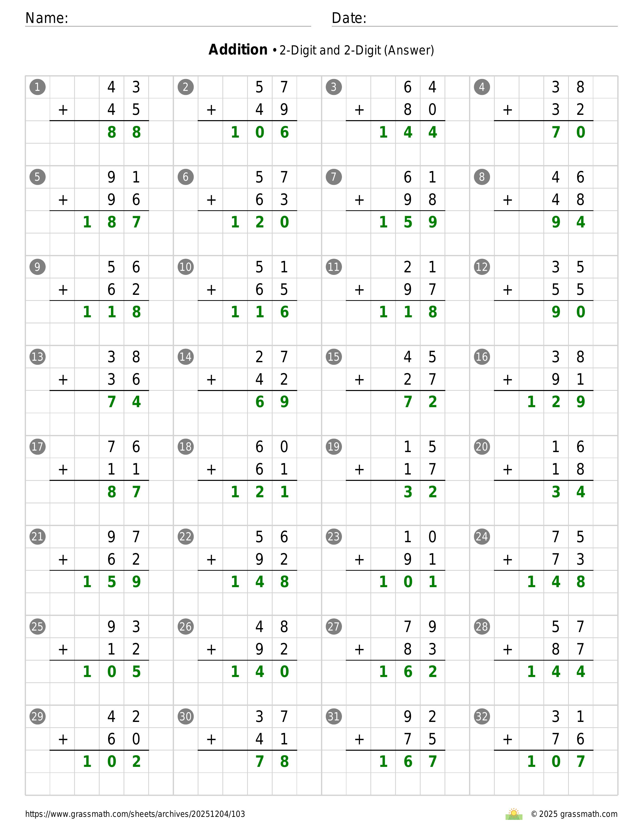 Addition 2-Digit and 2-Digit