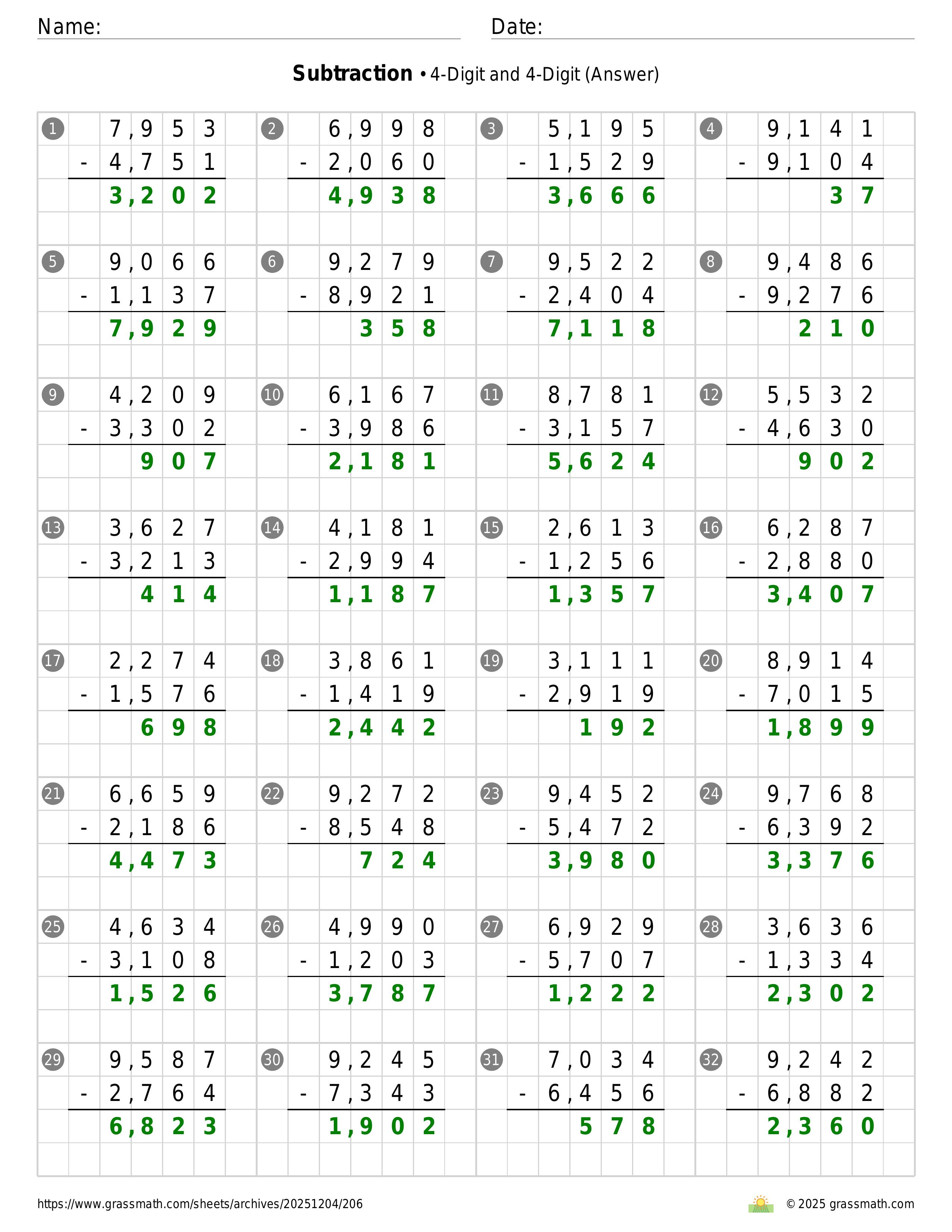 Subtraction 4-Digit and 4-Digit