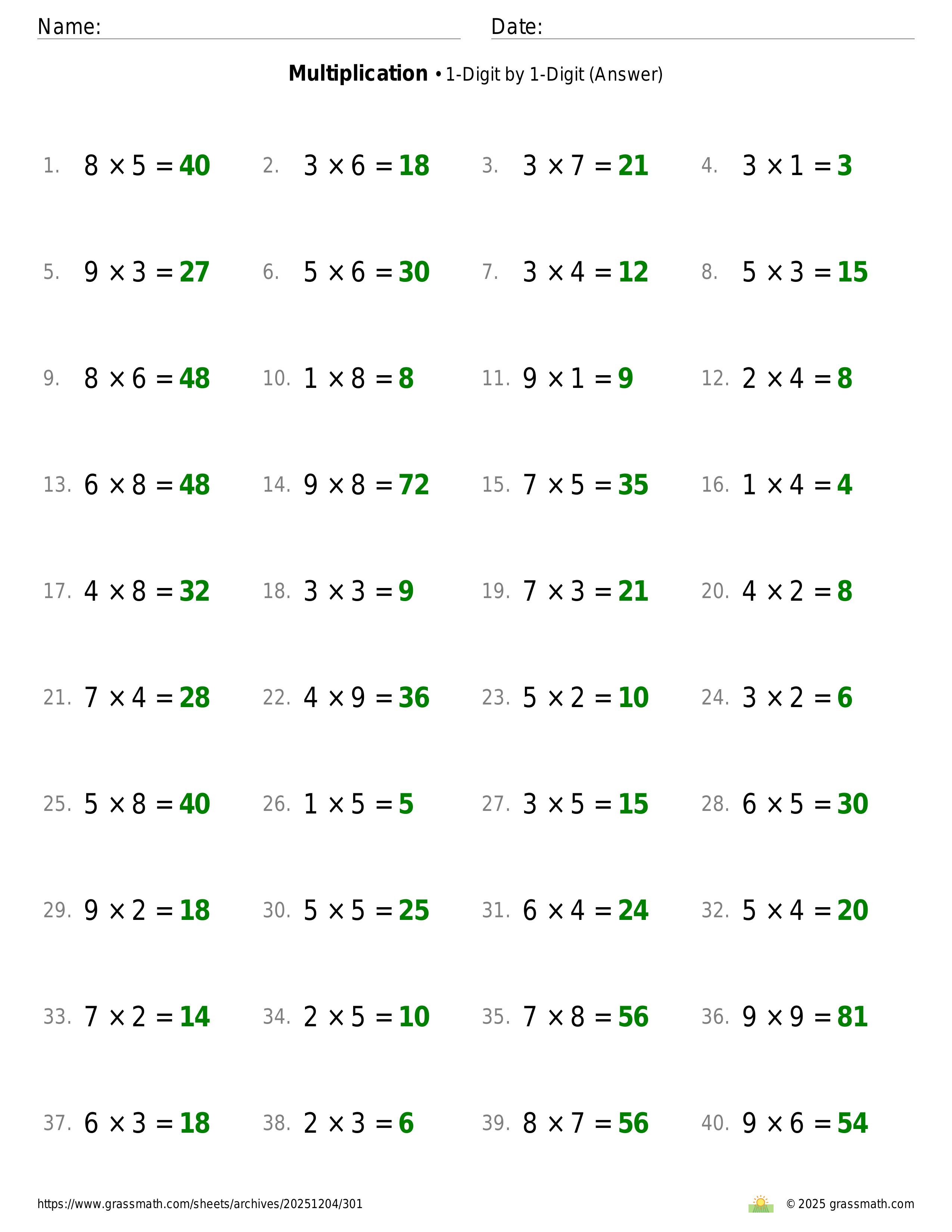 Multiplication 1-Digit by 1-Digit