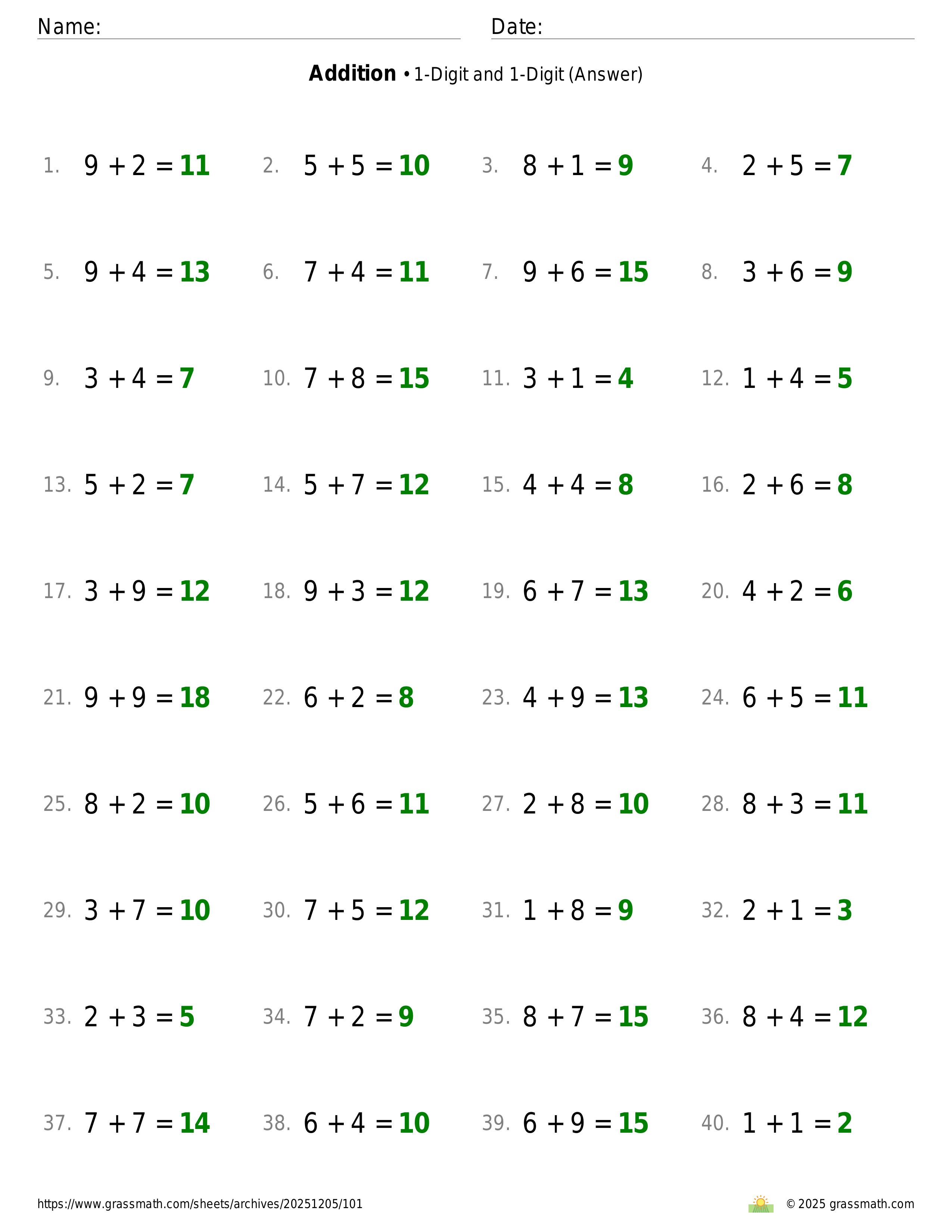 Addition 1-Digit and 1-Digit