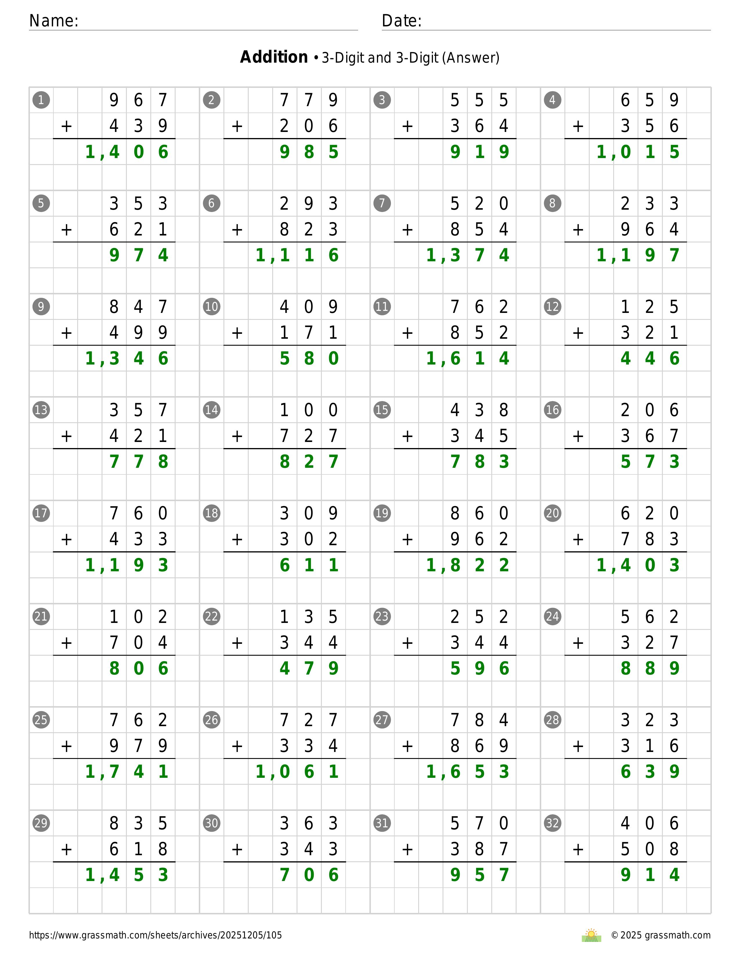 Addition 3-Digit and 3-Digit