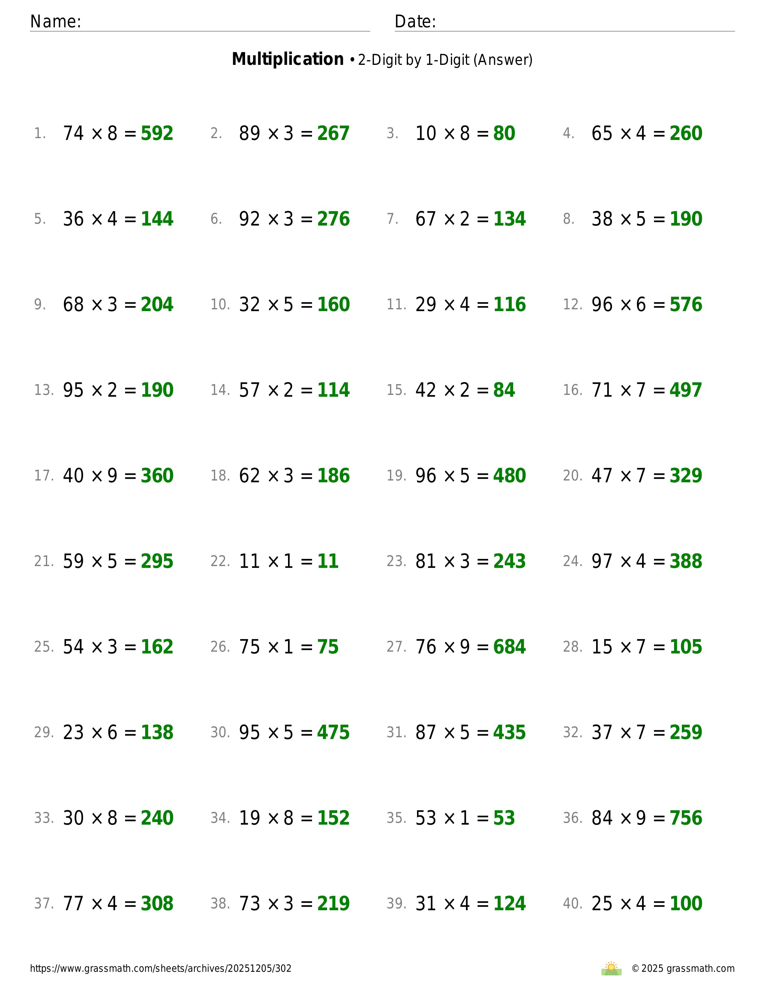 Multiplication 2-Digit by 1-Digit