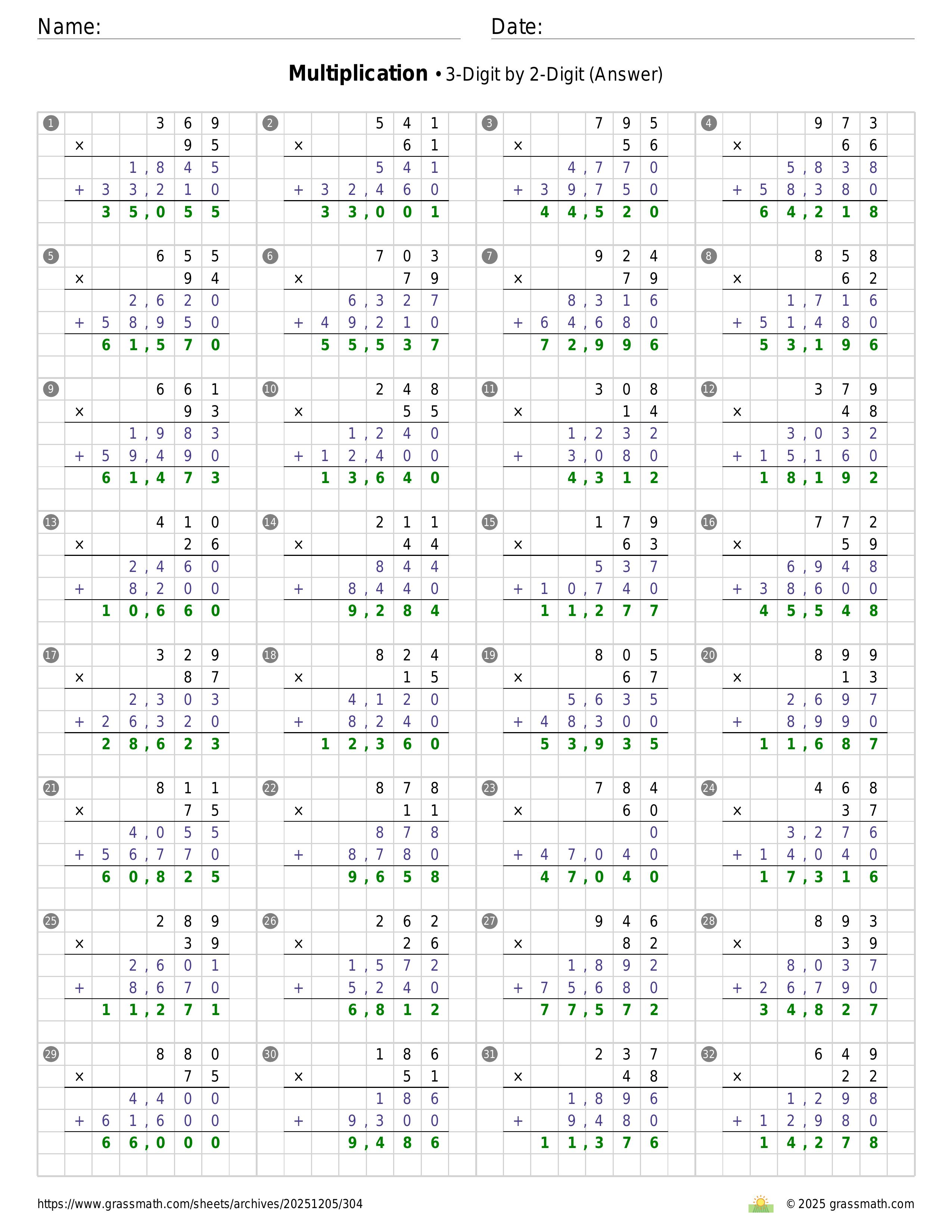 Multiplication 3-Digit by 2-Digit