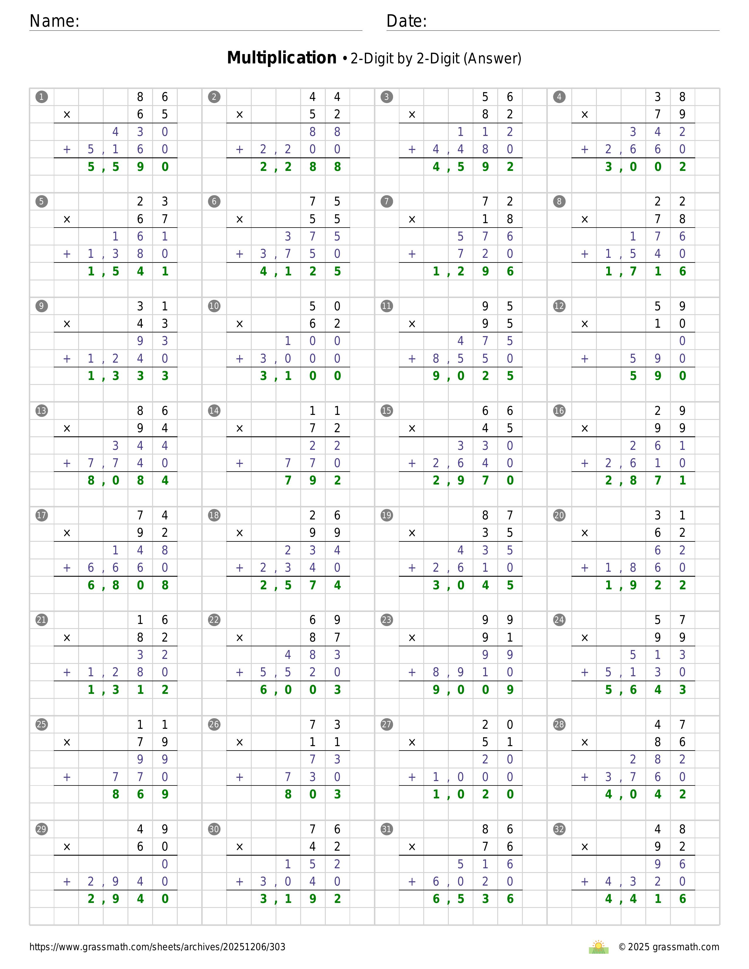 Multiplication 2-Digit by 2-Digit