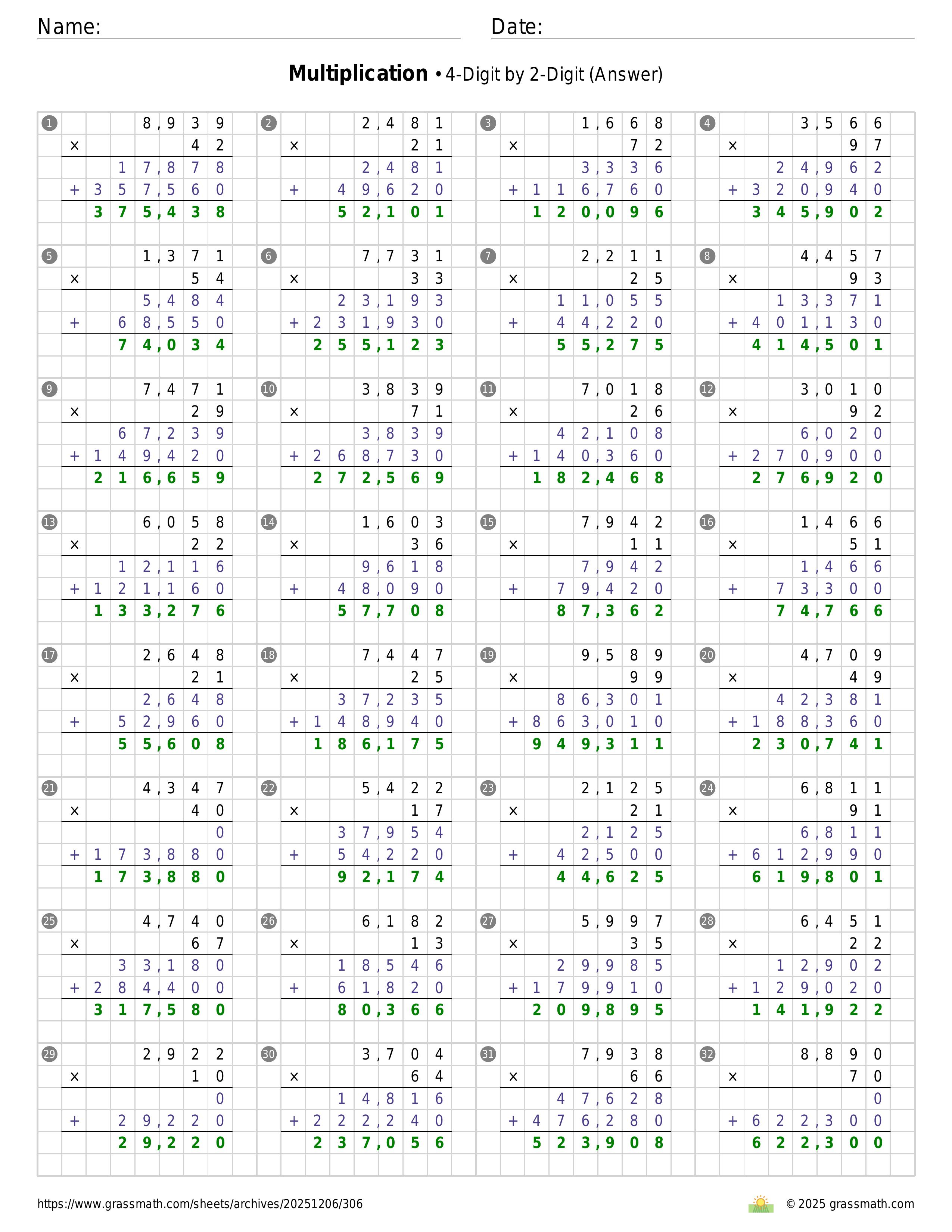Multiplication 4-Digit by 2-Digit