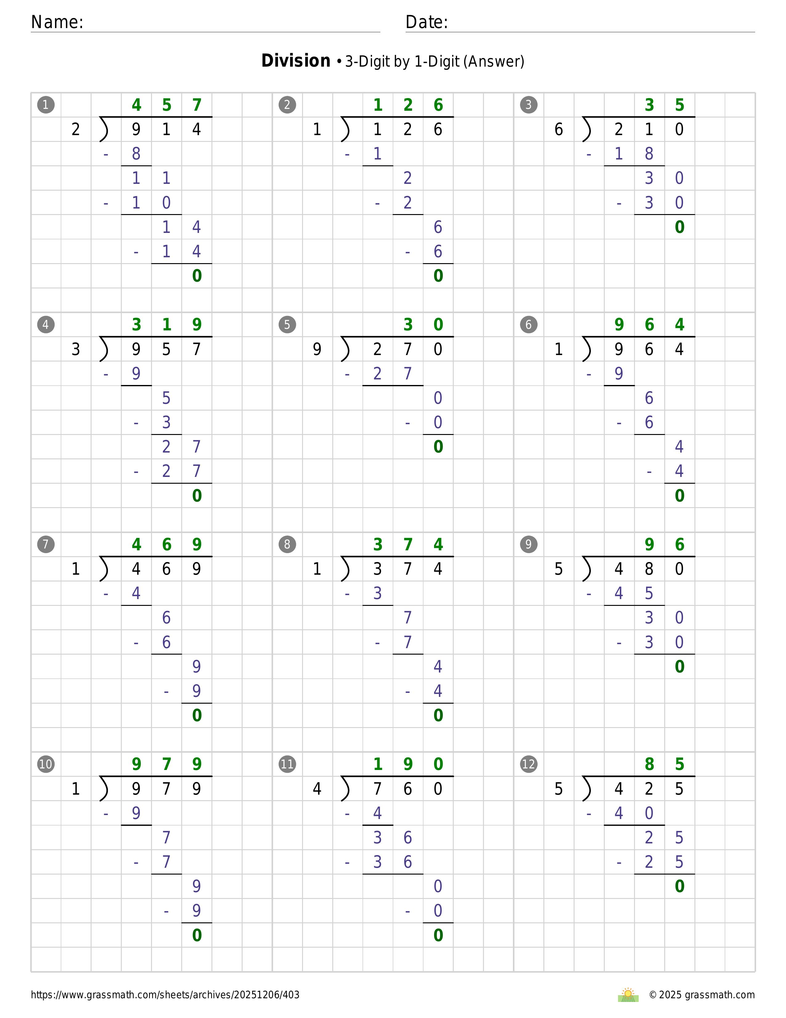 Division 3-Digit by 1-Digit