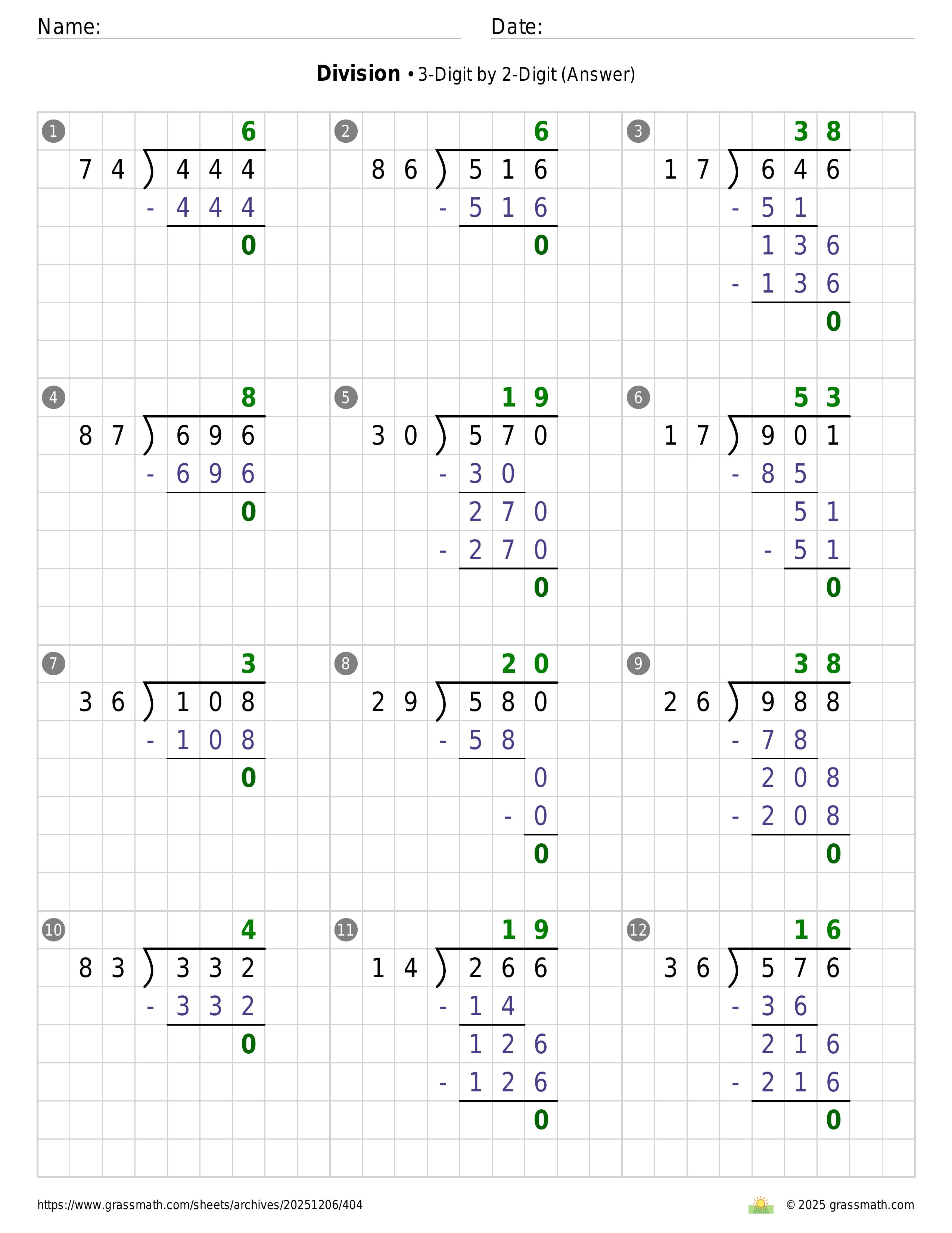 Division 3-Digit by 2-Digit