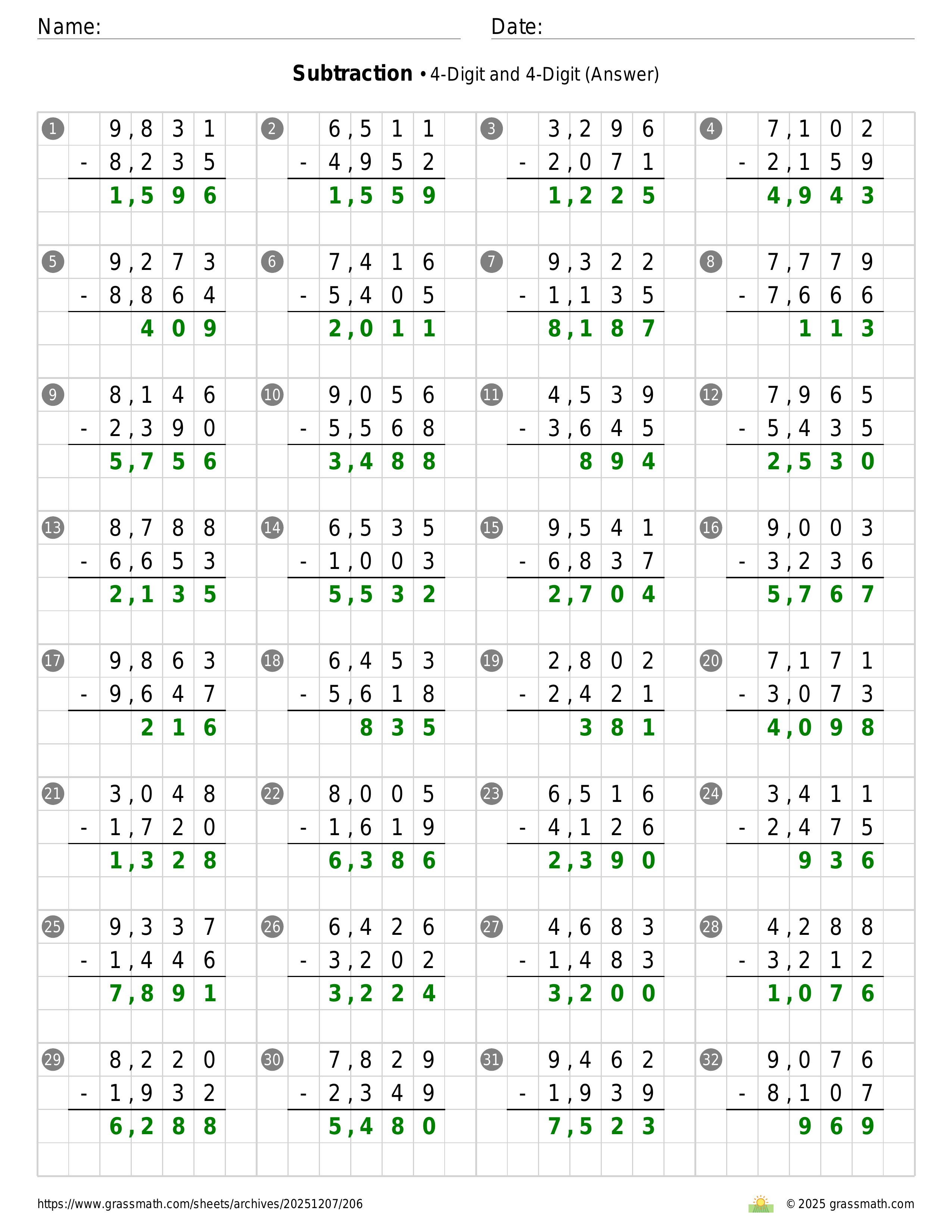 Subtraction 4-Digit and 4-Digit