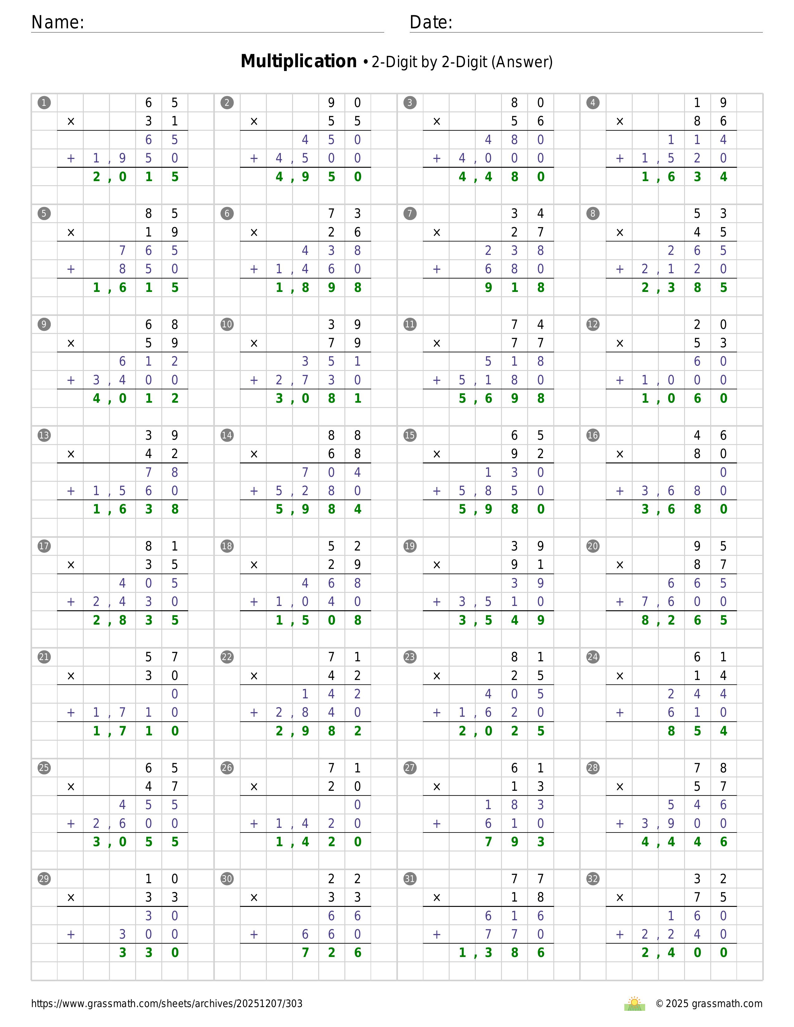 Multiplication 2-Digit by 2-Digit