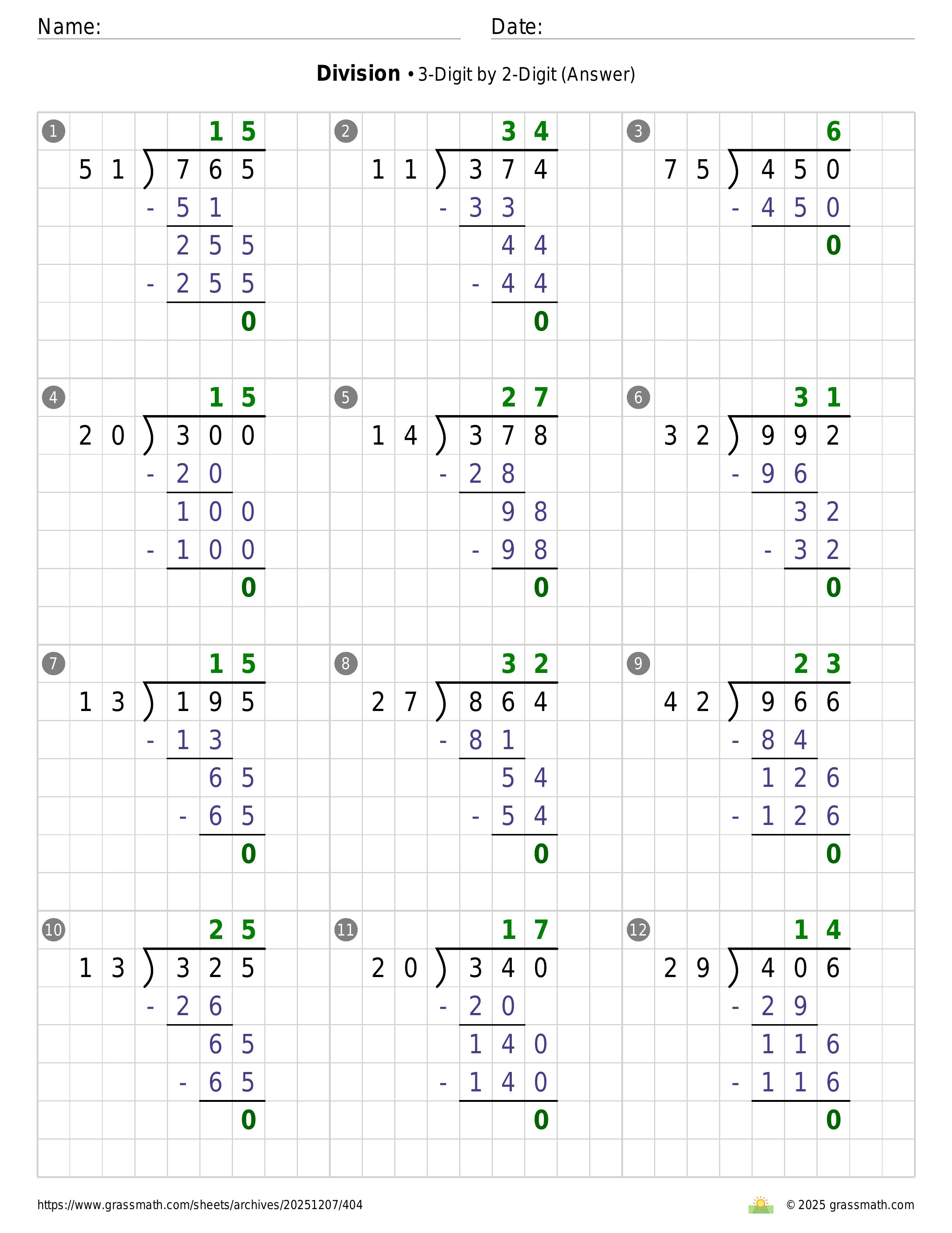 Division 3-Digit by 2-Digit