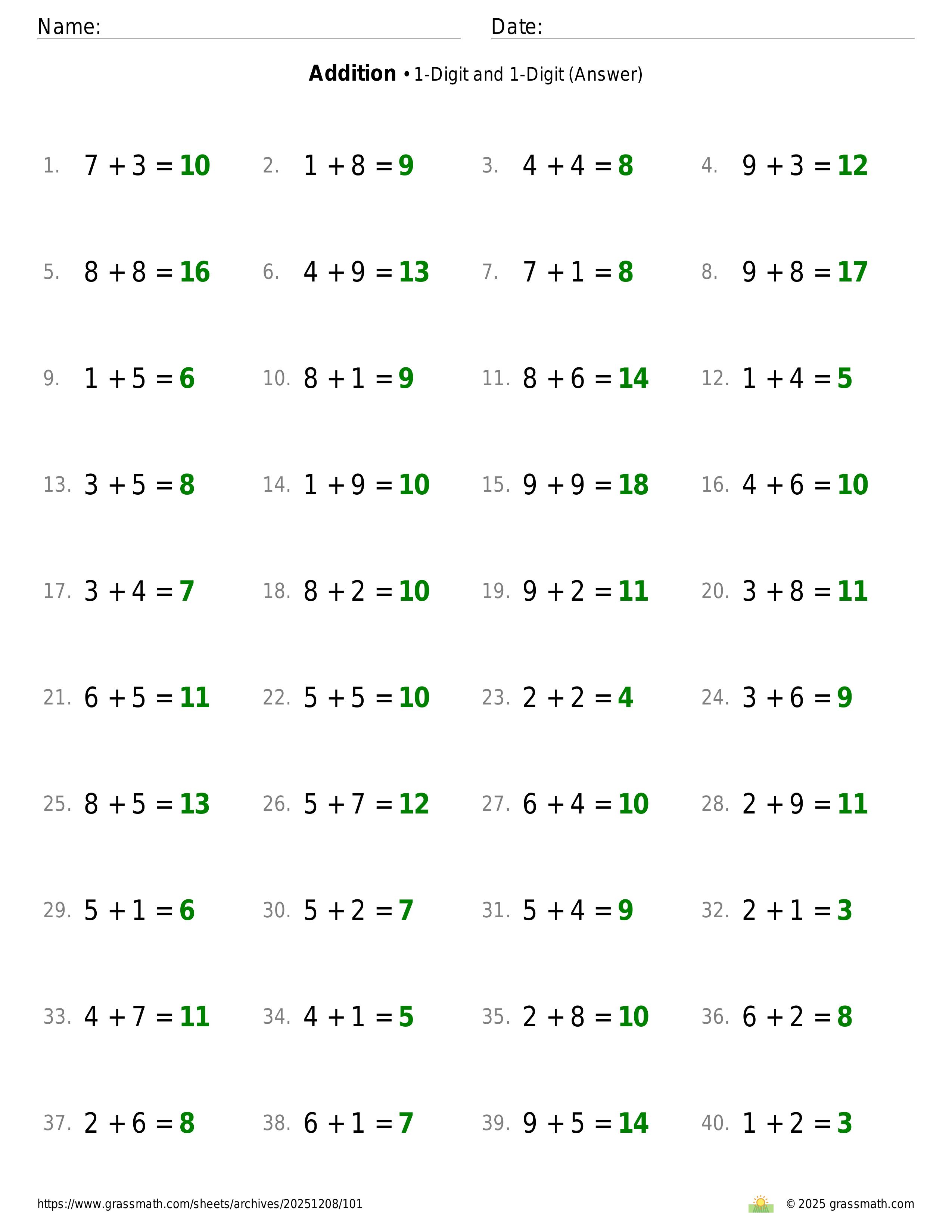 Addition 1-Digit and 1-Digit