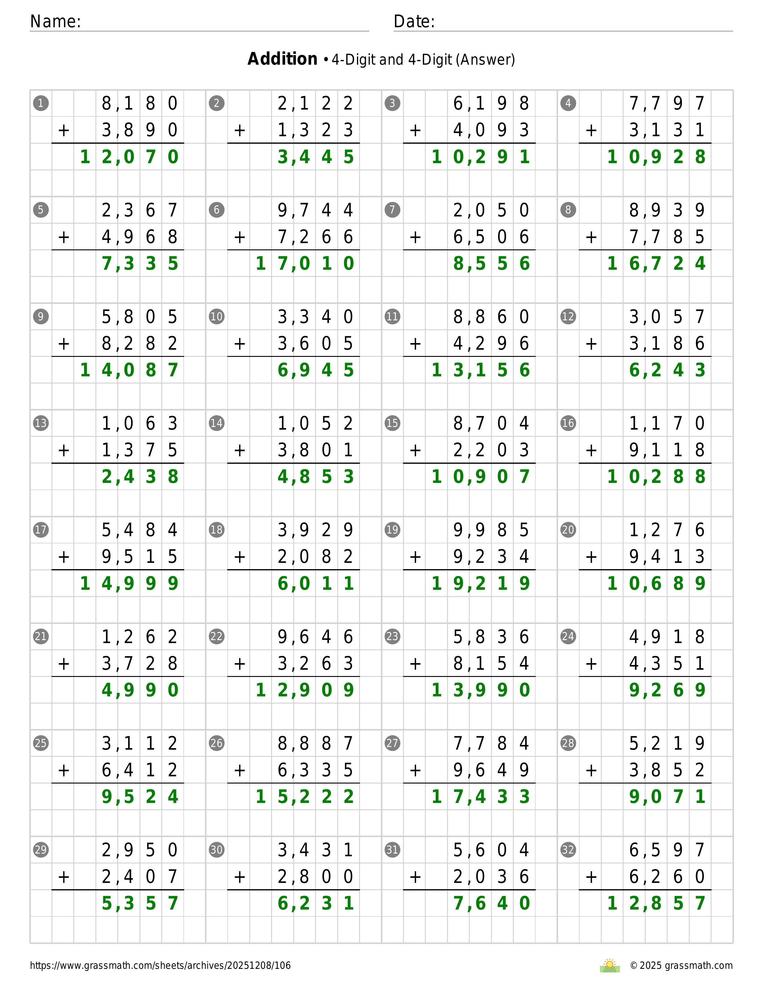 Addition 4-Digit and 4-Digit