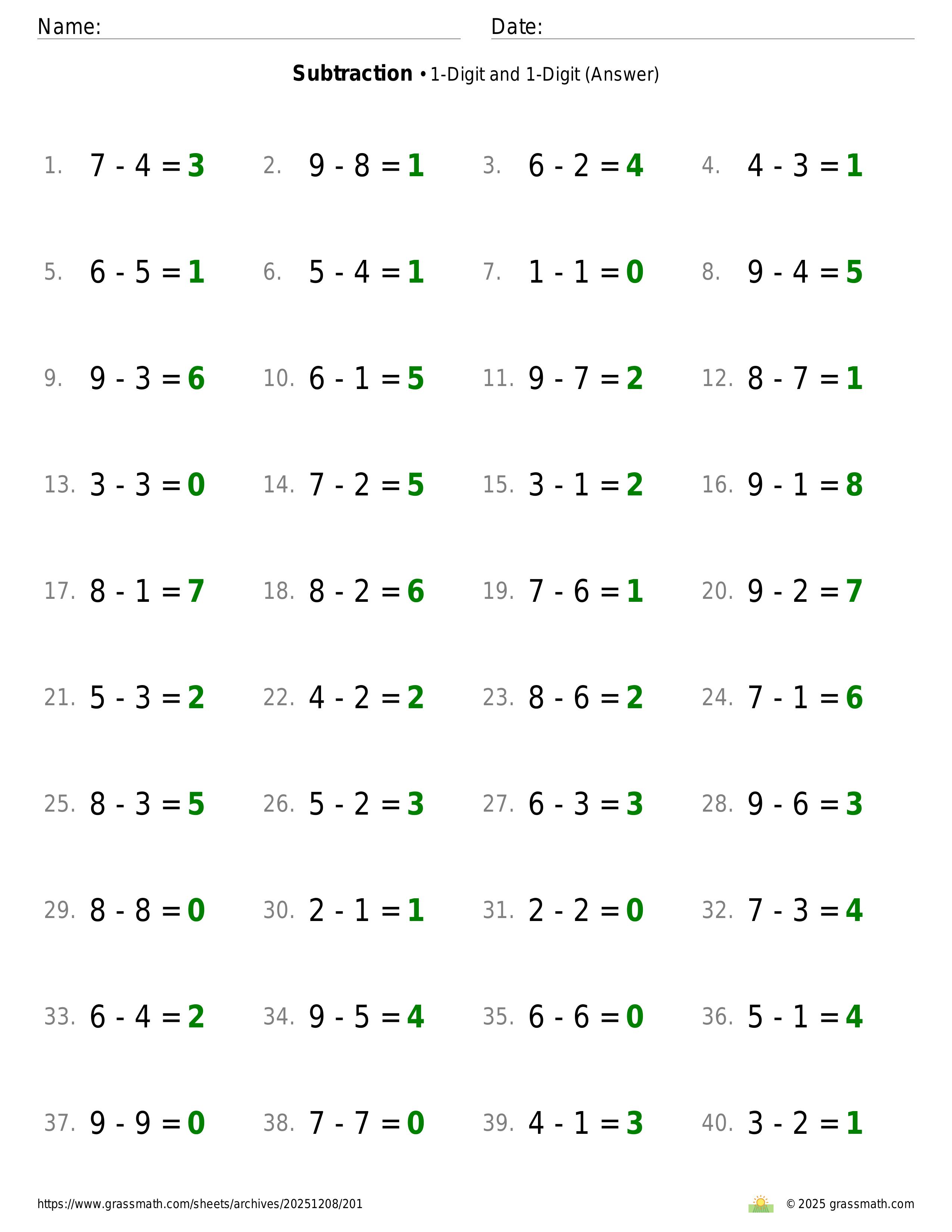 Subtraction 1-Digit and 1-Digit