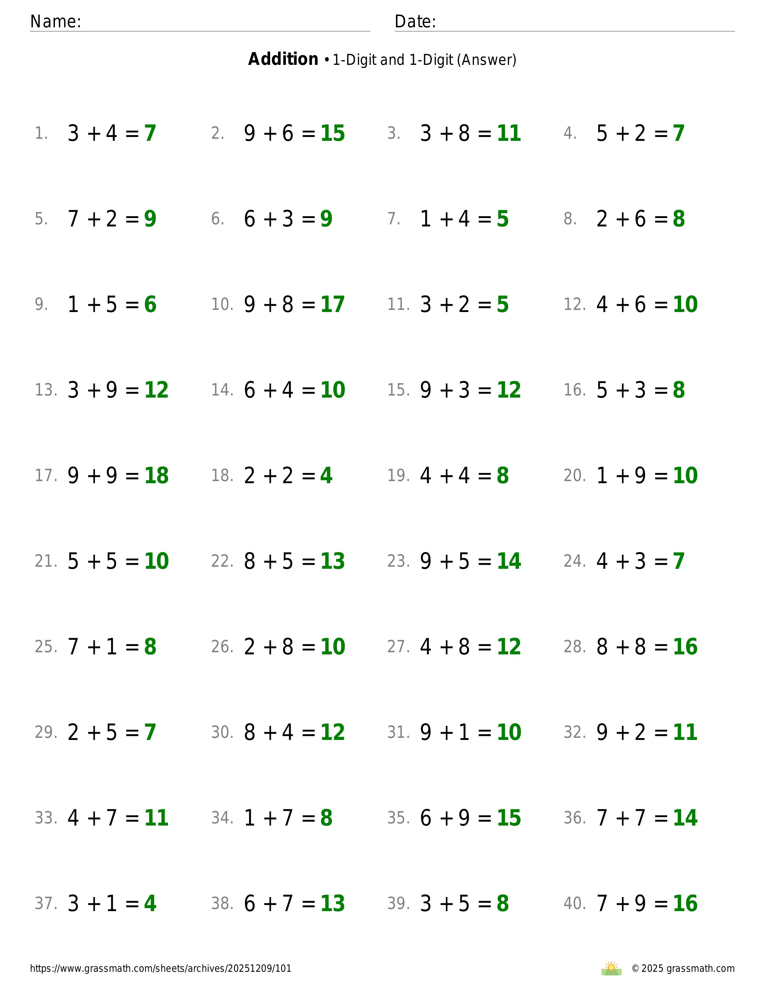 Addition 1-Digit and 1-Digit